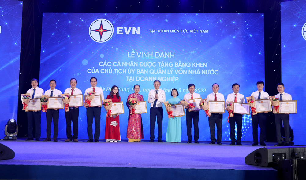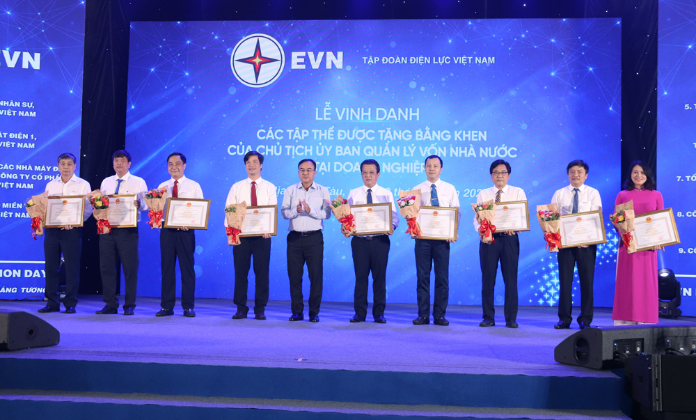 Chủ tịch HĐTV EVN trao Bằng khen của Ủy ban Quản lý vốn Nhà nước tại doanh nghiệp cho các tập thể có thành tích xuất sắc trong công tác đào tạo phát triển nguồn nhân lực giai đoạn 2016-2020