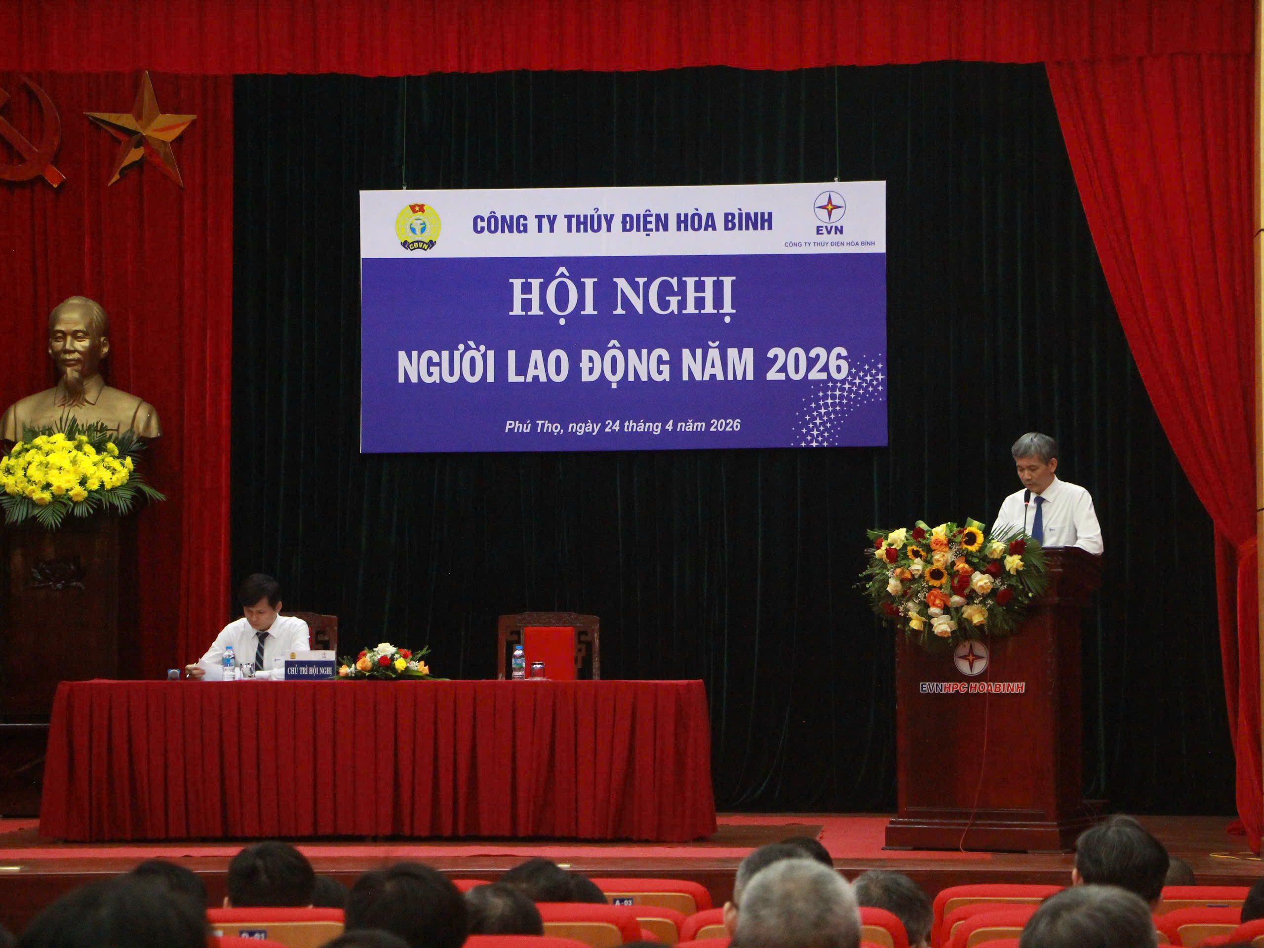 Chiều ngày 24/4, Công ty Thủy điện Hòa Bình đã tổ chức thành công Hội nghị người lao động năm 2026 với sự tham dự của Ban lãnh đạo cùng 180 đại biểu đại diện cho người lao động đến từ 8 đơn vị trực thuộc. Hội nghị nhằm tổng kết kết quả hoạt động năm 2025 và đề ra phương hướng, nhiệm vụ cho năm 2026.