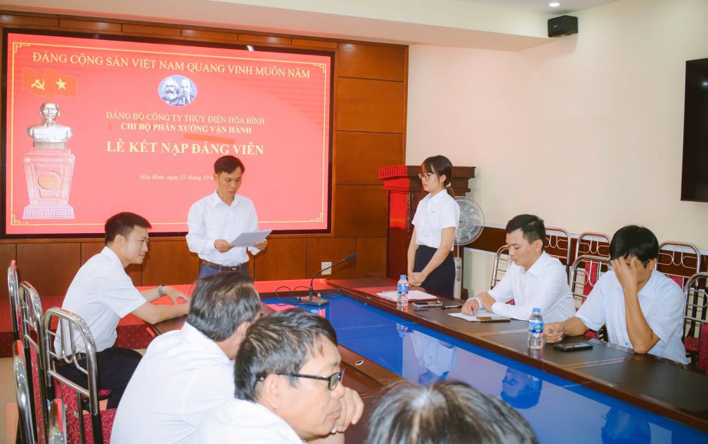 Chiều ngày 15/10/2024 tại trụ sở Công ty Thủy điện Hòa Bình, Chi bộ Phân xưởng Vận hành tổ chức Lễ kết nạp đảng viên mới cho 2 quần chúng ưu tú Vũ Thị Thanh Thủy và Nguyễn Khắc Thắng.