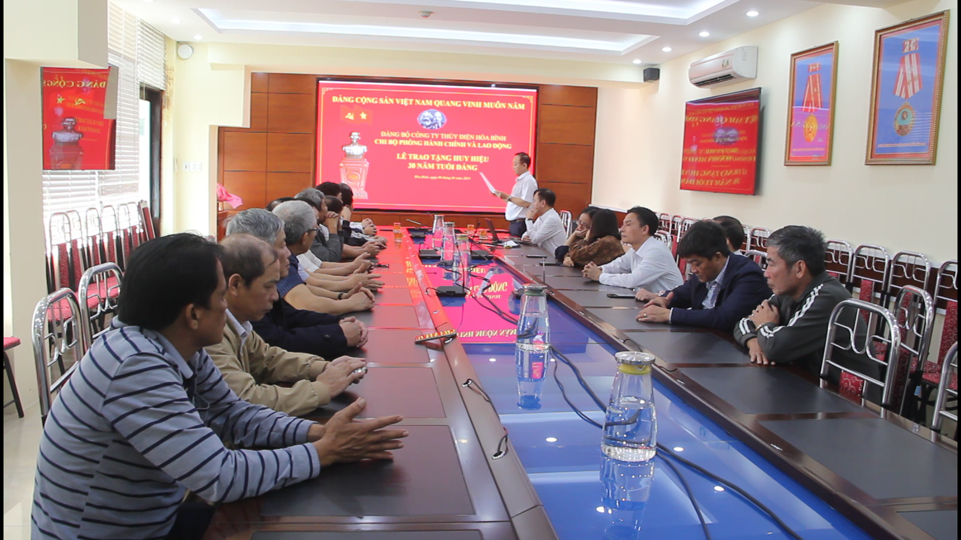 Thay mặt Đảng ủy Công ty Thủy điện Hòa Bình, đồng chí Phạm Văn Vương, Bí thư Đảng ủy đã trao tặng Huy hiệu 30 năm tuổi Đảng cho đồng chí Nguyễn Văn Phai. Tại buổi lễ, các đồng chí Đảng viên trong Chi bộ Phòng Hành chính và Lao động cùng chúc mừng đồng chí Nguyễn Văn Phai vinh dự được nhận Huy hiệu 30 năm tuổi Đảng và xem đây là niềm vinh dự với Chi bộ phòng Hành chính và Lao động đã có những Đảng viên ưu tú.