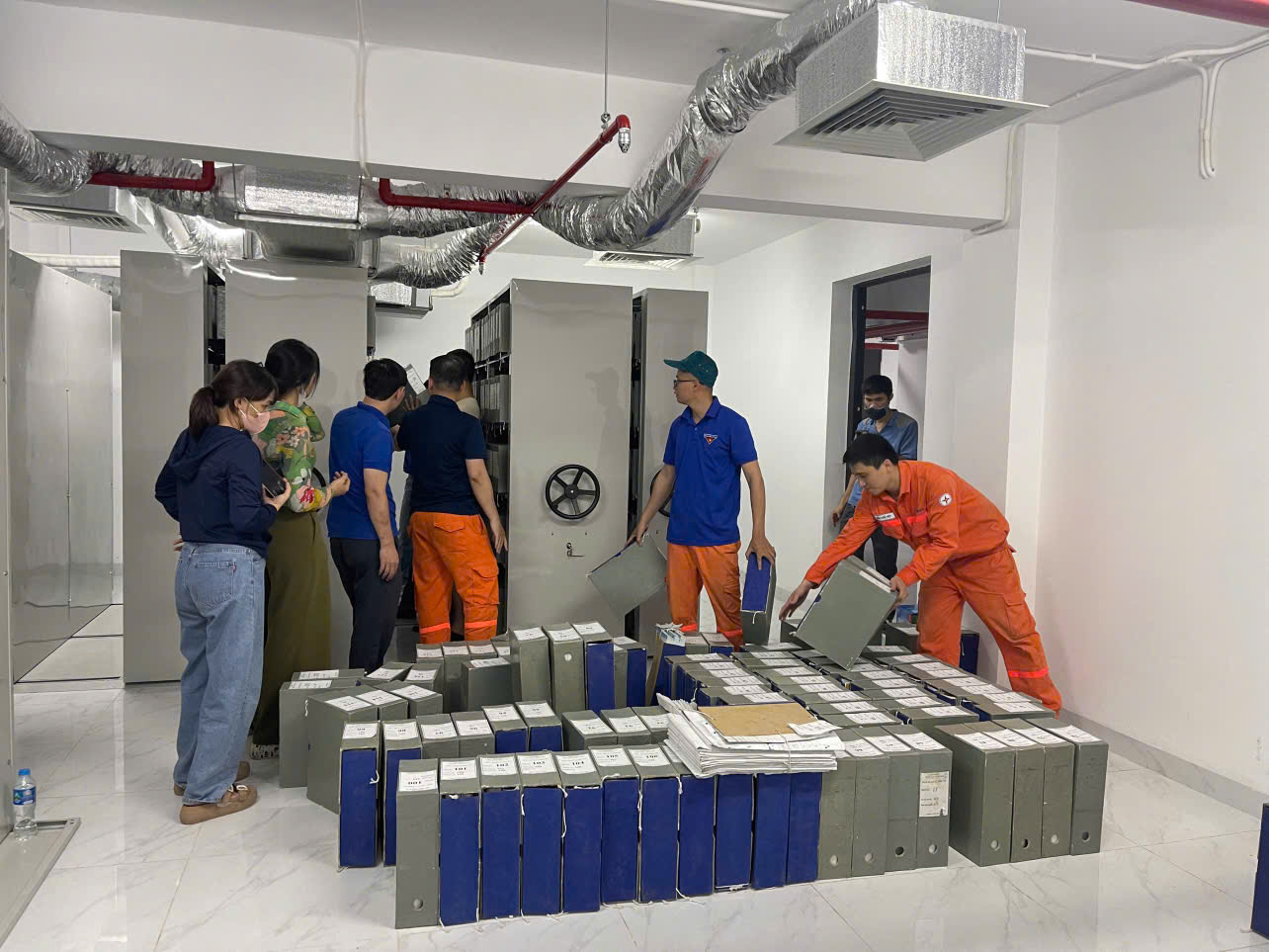 Trước đó, đại diện văn phòng EVN, đồng chí Bùi Công Luận – Chánh văn phòng Tập đoàn, đồng chí Đoàn Văn Huy – Phó Chánh văn phòng Tập đoàn đã tới khu lưu trữ tạm và kho lưu trữ mới tại Công ty thủy điện Hòa Bình để đánh giá sơ bộ lại khối lượng công việc, nhắc nhở những lưu ý khi thực hiện vận chuyển, và giải đáp những thắc mắc, khó khăn trong khâu triển khai công việc sao cho hiệu quả, cũng như nhấn mạnh sự quan tâm của Tập đoàn với công tác đoàn thanh niên, luôn tạo điều kiện nhiều nhất để đoàn được hoạt động, phát triển. Để khích lệ tinh thần các đoàn viên, đồng chí Bùi Công Luận cùng đồng chí Đoàn Văn Huy, đã tận tay vận chuyển các kiện tài liệu đầu tiên từ kho lưu trữ tạm về tới kho lưu trữ mới tại khu đất trạm lọc sạch của Công ty thủy điện Hòa Bình.