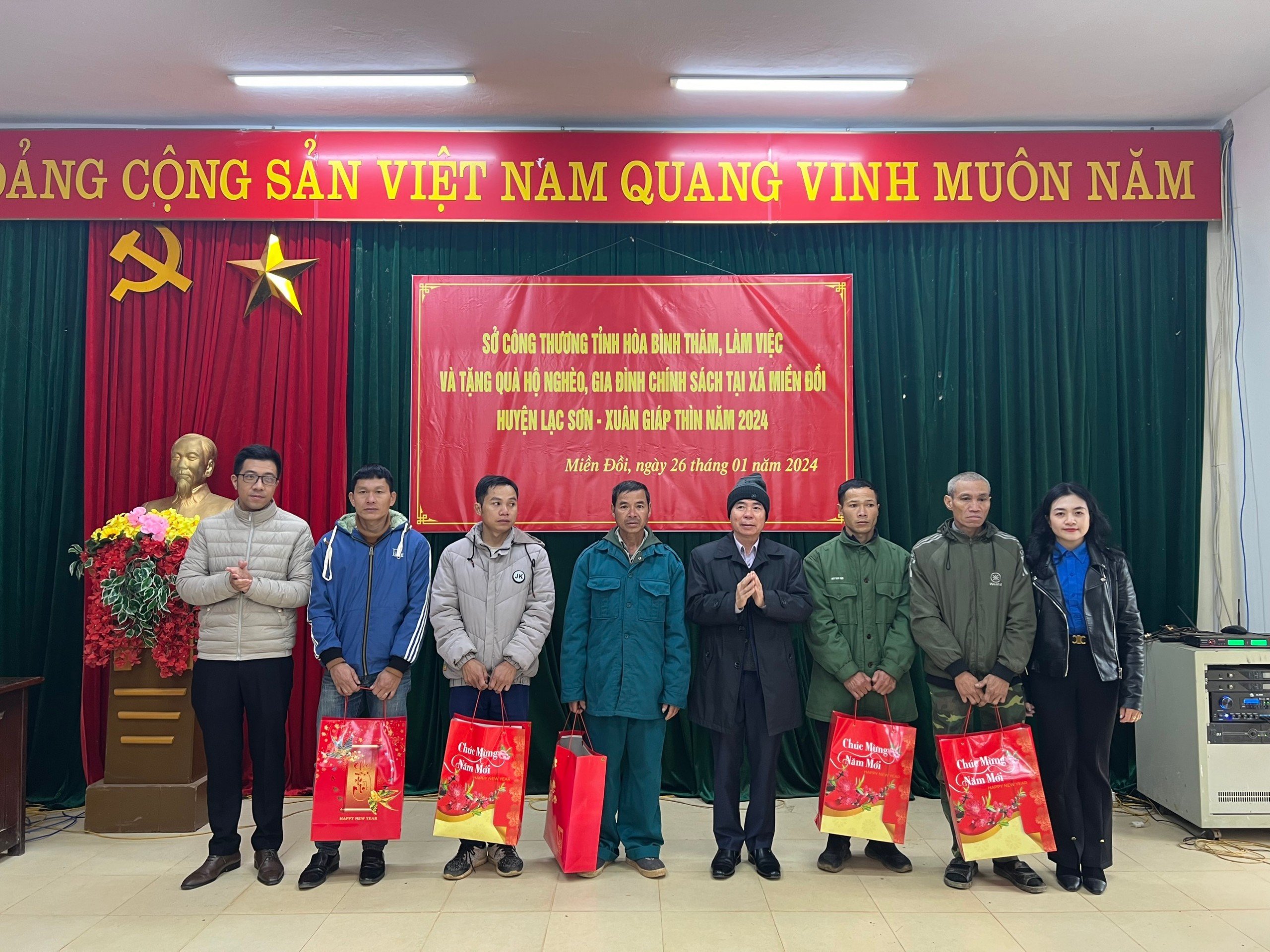 Vào sáng ngày 26 tháng 01 năm 2024, tại ủy ban nhân dân xã Miền Đồi, huyện Lạc Sơn tỉnh Hòa Bình đã diễn ra chương trình tặng quà cho các hộ nghèo và gia đình chính sách nhân dịp xuân Giáp Thìn 2024, do Đoàn thanh niên Sở Công Thương tỉnh Hòa Bình tổ chức.
