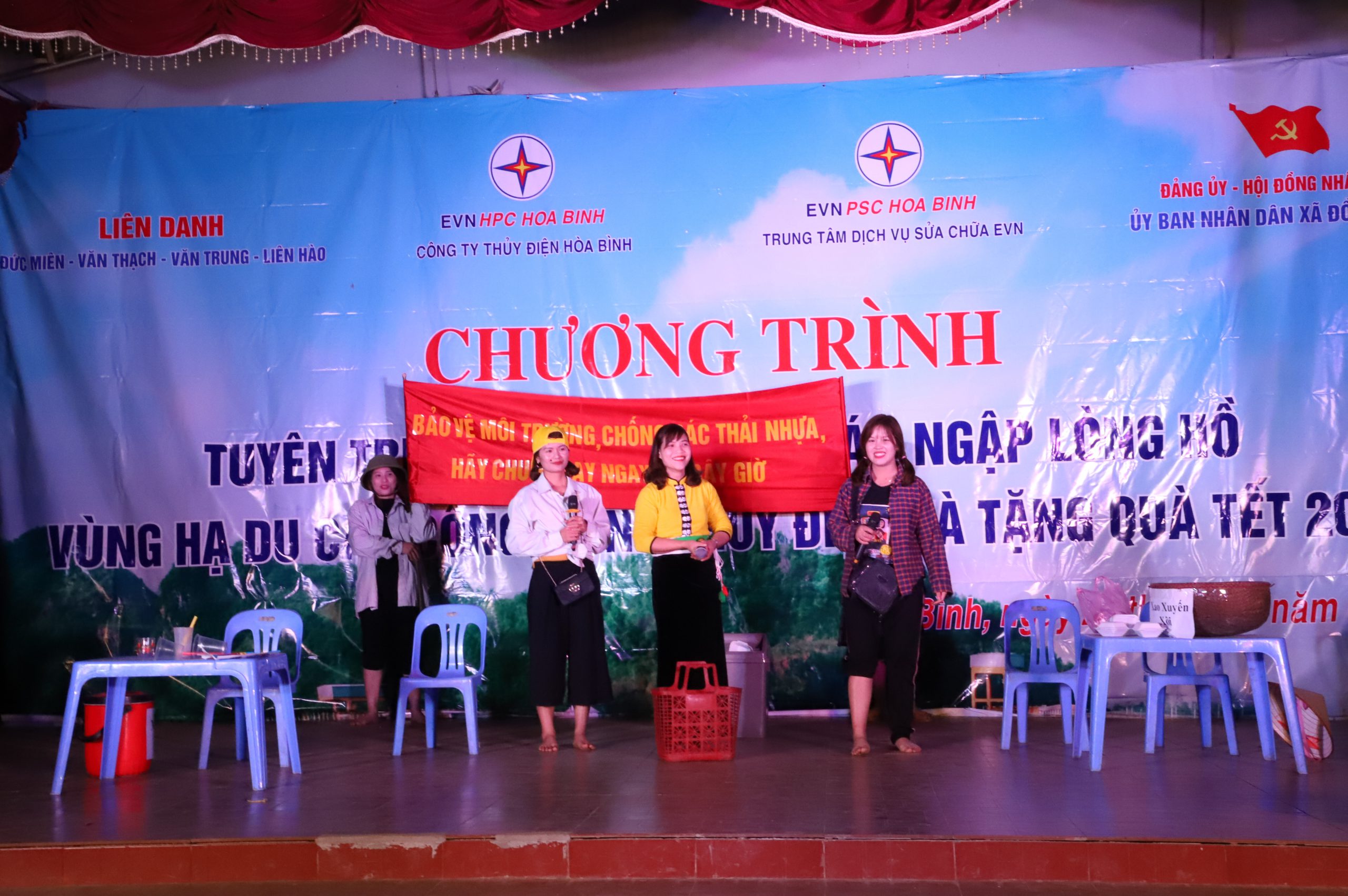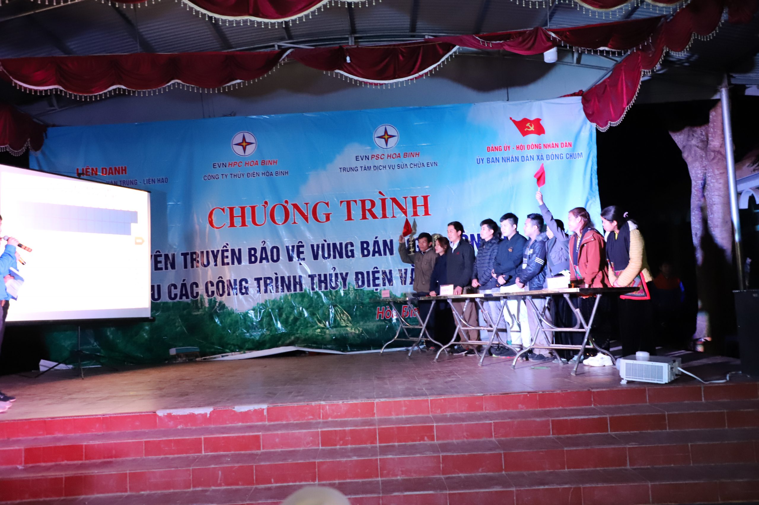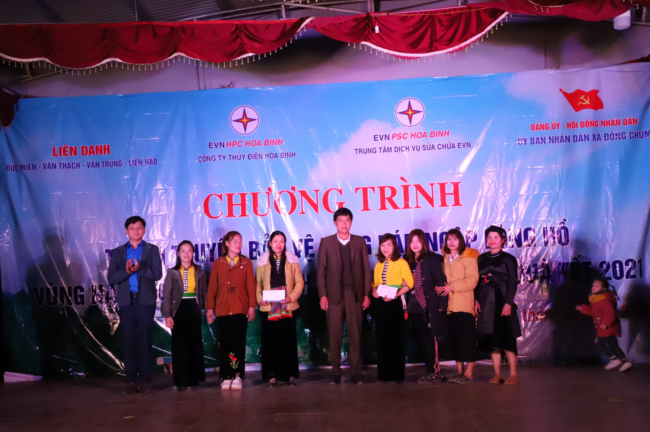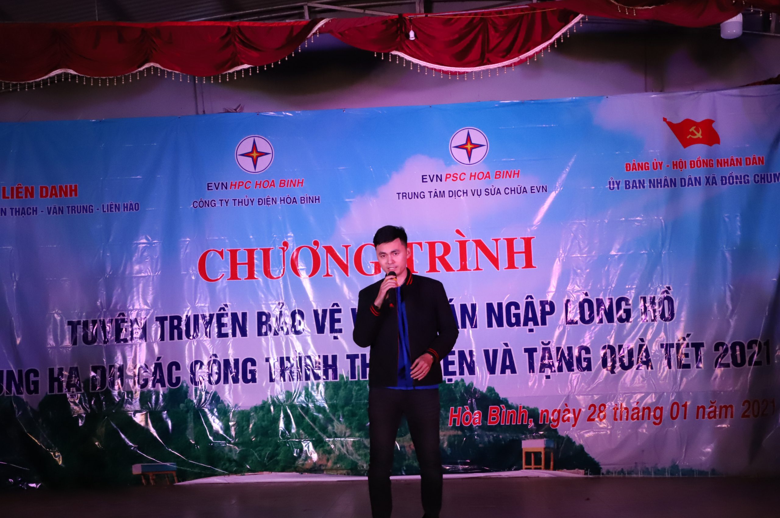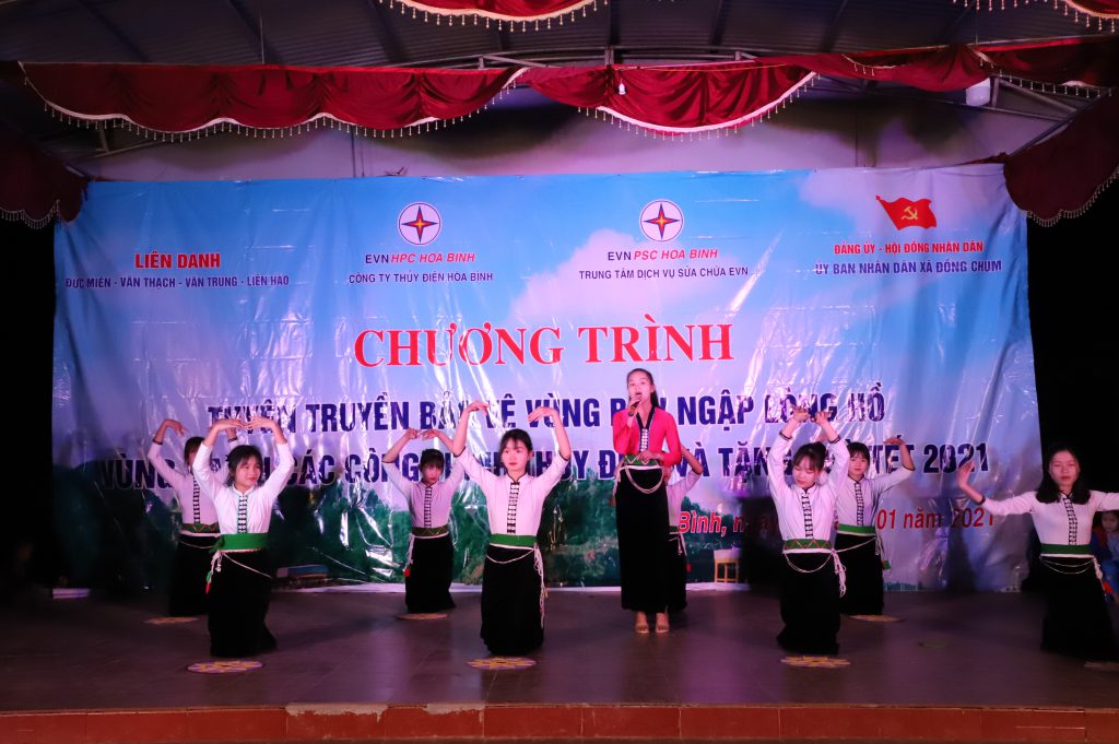 Thực hiện văn bản chỉ đạo của Tập đoàn Điện lực Việt Nam về công tác tuyên truyền và kế hoạch triển khai công tác năm 2021 của Công ty Thủy điện Hòa Bình, Đoàn thanh niên Công ty thủy điện Hòa Bình và Trung tâm dịch vụ sửa chữa EVN PSC Hòa Bình tổ chức chương trình “Tuyên truyền bảo vệ vùng bán ngập lòng hồ, vùng hạ du các công trình Thủy điện” kết hợp cùng chương trình tặng quà tết cho đồng bào nghèo năm 2021. Chương trình năm nay được thực hiện trên địa bàn xã Đồng Chum – Huyện Đà Bắc – Tỉnh Hòa Bình, là xã nằm trên vùng lòng hồ Hòa Bình.