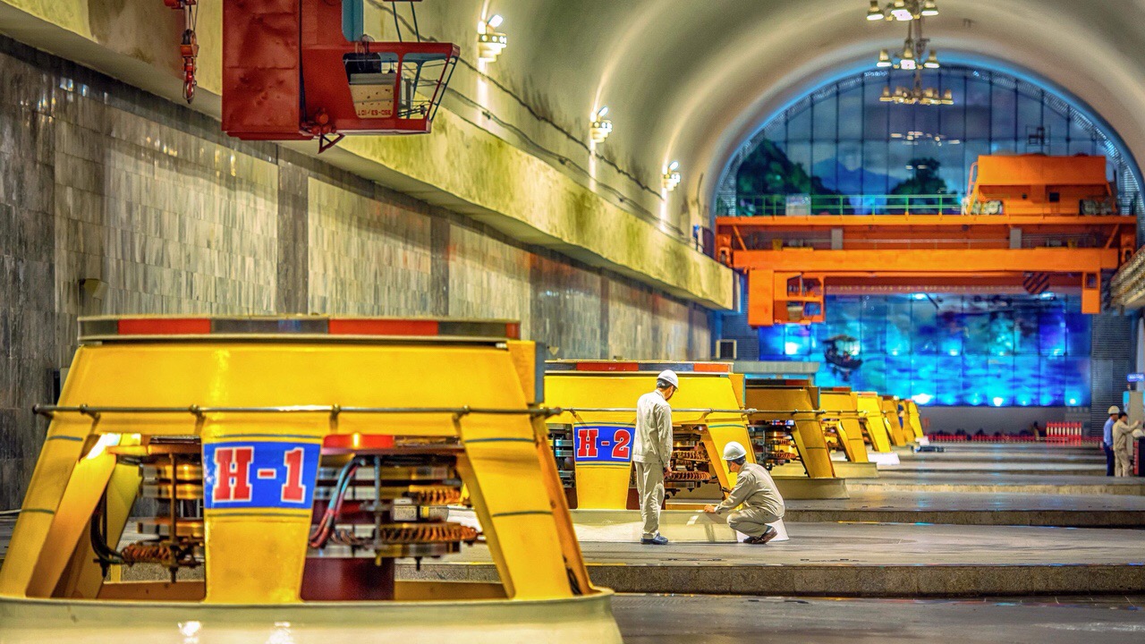 Các tổ máy thủy điện Hòa Bình đang vận hành phát điện lên lưới