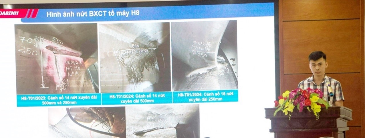 - Chuyên đề “Thực trạng công tác vận hành Tuabin tại Nhà máy Thủy điện Hòa Bình” do chính Công ty Thủy điện Hòa Bình trình bày đã làm rõ bức tranh toàn cảnh, phác thảo những thách thức lớn đối với các tổ máy H4, H7, H8, nơi tình trạng nứt BXCT xuất hiện liên tục, tiềm ẩn nguy cơ ảnh hưởng đến an toàn vận hành và an ninh năng lượng. Điều này càng khẳng định tầm quan trọng của Hội thảo, nơi các giải pháp tối ưu được kỳ vọng sẽ mở ra các hướng đi phù hợp nhằm tiếp tục khai thác hiệu quả các BXCT.