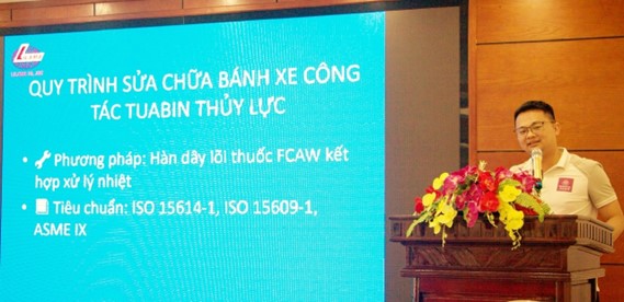 - Công ty Lắp máy 10 (LILAMA 10) đã trình bày chuyên đề “Quy trình sửa chữa BXCT TuaBin thủy lực” với phương pháp Hàn dây lõi thuốc FCAW kết hợp xử lý nhiệt bằng sứ (Preheat, giữ nhiệt, PWHT). Quy trình này được xây dựng dựa trên các tiêu chuẩn quốc tế như ISO 15614-1, ISO 15609-1, ASME IX, với các bước chuẩn bị vật tư, thiết bị, gia nhiệt trước, thông số hàn, xử lý nhiệt sau hàn, và kiểm tra chất lượng chặt chẽ (PT, UT/TOFD, VT), hướng tới một giải pháp phục hồi toàn diện và bền vững hơn.