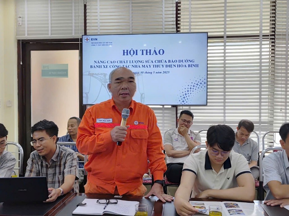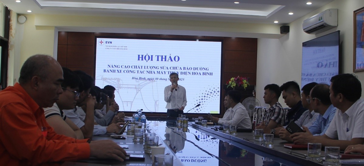 Ngày 30 tháng 5 năm 2025, trong không khí trang trọng và cởi mở, Công ty Thủy điện Hòa Bình (Công ty) tổ chức Hội thảo chuyên đề “Nâng cao chất lượng sửa chữa bảo dưỡng các bánh xe công tác Nhà máy Thủy điện Hòa Bình”. Sự kiện này không chỉ là một diễn đàn khoa học kỹ thuật, mà còn là minh chứng cho sự chủ động, quyết tâm của Công ty trong việc đổi mới, nâng cao hiệu quả trong công tác sửa chữa bảo dưỡng, quản lý, vận hành đảm bảo kế hoạch sản xuất EVN giao và góp phần đảm bảo an ninh năng lượng quốc gia trước những thách thức của thời đại.