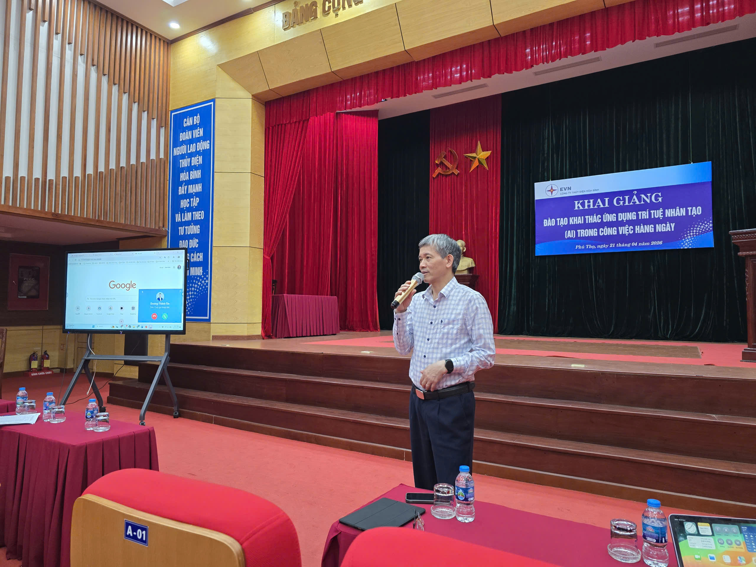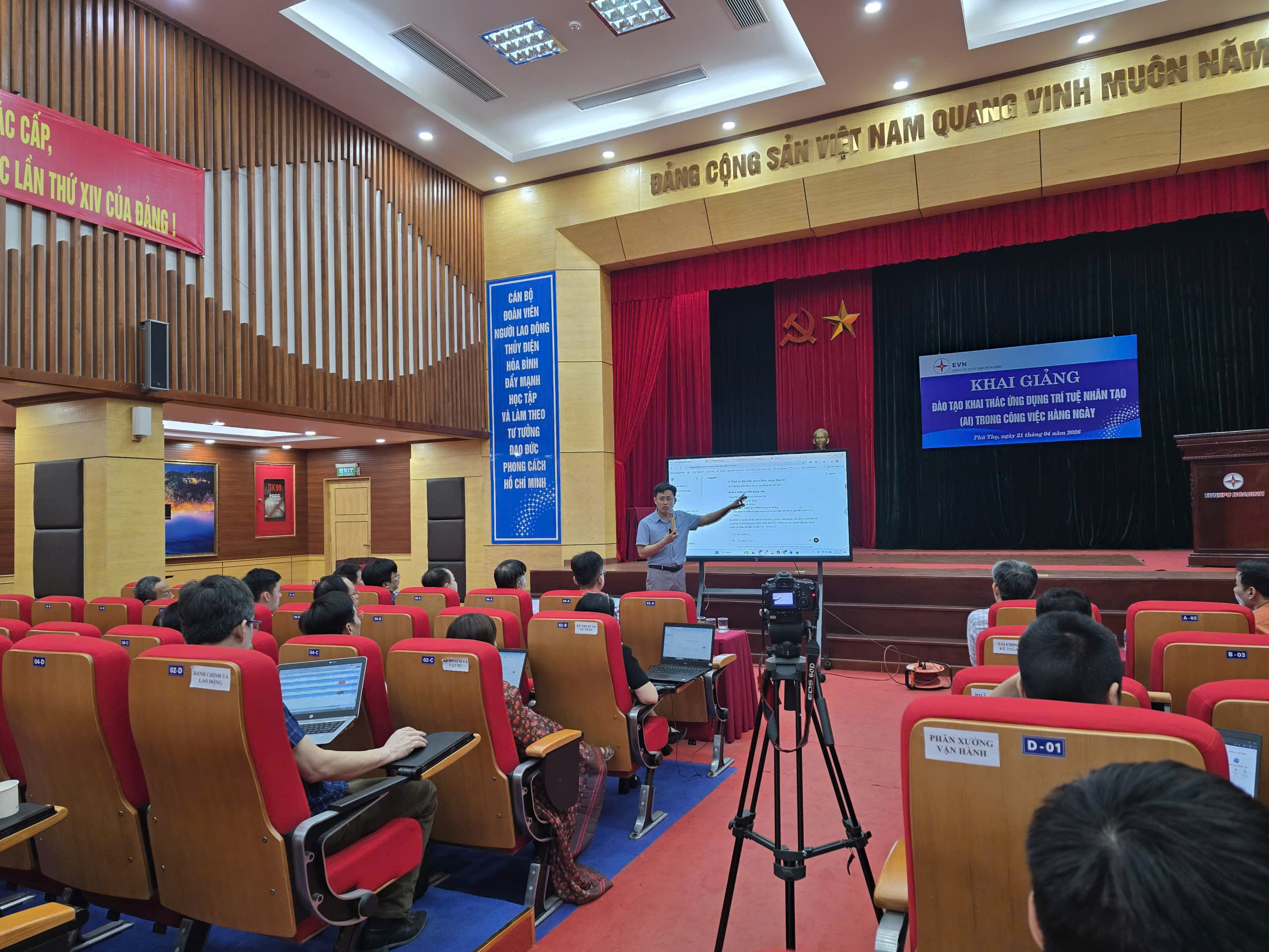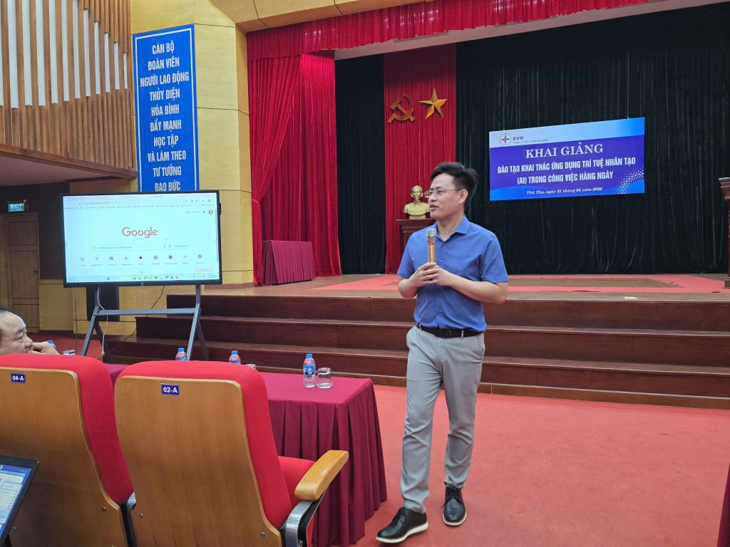 Nhằm nâng cao năng lực chuyển đổi số và bắt kịp xu thế công nghệ hiện đại, Công ty Thủy điện Hòa Bình đã tổ chức khóa đào tạo “Khai thác ứng dụng trí tuệ nhân tạo (AI) trong công việc hàng ngày” dành cho cán bộ, kỹ sư, chuyên viên trong toàn Công ty. Khóa đào tạo diễn ra trong 3 ngày (21 đến 23 tháng 4 năm 2026). Ông Đặng Ngọc Thuyên – Giảng viên khoa Công nghệ thông tin của Đại học Bách Khoa Hà Nội thuyết giảng, với nội dung thiết thực, bám sát nhu cầu thực tiễn của doanh nghiệp trong giai đoạn phát triển mới.