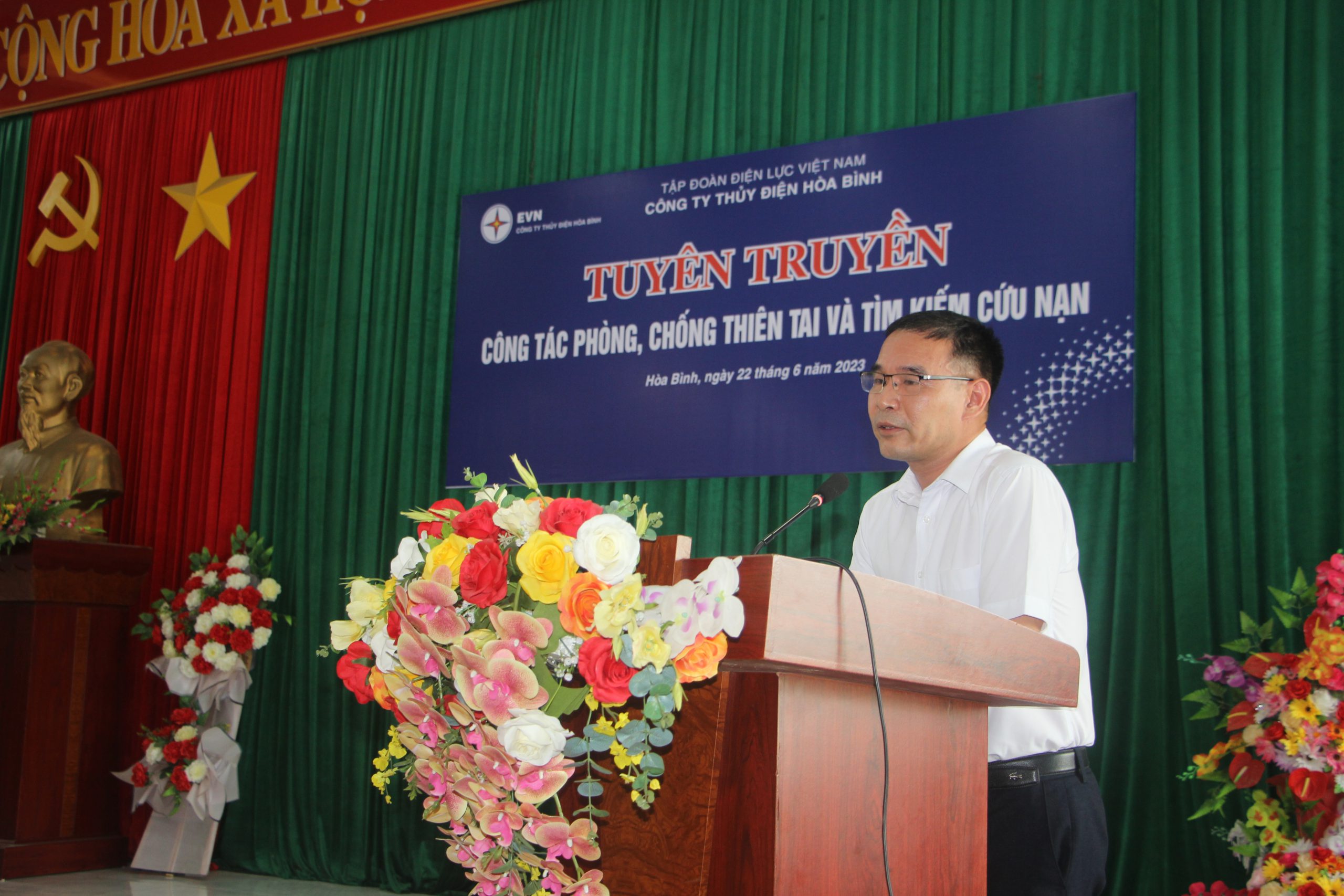 Ông Trần Văn Hòa, phó Giám đốc Công ty Thủy điện Hòa Bình phát biểu tại buổi tuyên truyền