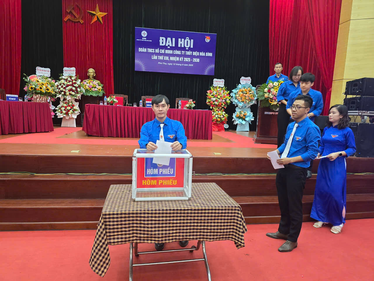 Với tinh thần đoàn kết, thống nhất cao, Đại hội đã bầu trực tiếp ban Chấp hành Đoàn Công ty khoá XIII, nhiệm kỳ 2025- 2030 bao gồm 07 đồng chí; đồng chí Phạm Duy Tùng được Đại hội tín nhiệm bầu giữ chức vụ Bí thư Đoàn TNCS Hồ Chí Minh Công ty Thuỷ điện Hoà Bình nhiệm kỳ 2025-2030. Đồng thời, Đại hội cũng bầu ra 05 đại biểu chính thức tham dự đoàn đại biểu Đại hội Đoàn TNCS Hồ Chí Minh Tập đoàn Điện lực Việt Nam lần thứ V, nhiệm kỳ 2025 – 2030.