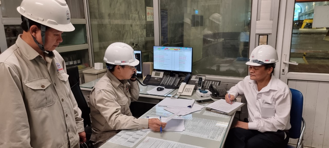 Ngày 01/11/2021 Phân xưởng Vận hành phối hợp với phòng Kỹ thuật An toàn và phòng HCLĐ tổ chức diễn tập xử lý sự cố toàn ca VH2 với sự chủ trì của đồng chí Phạm Văn Vương – Phó Giám đốc và sự tham gia của 22 chức danh trong ca vận hành. Đây là một hoạt động định kỳ của phân xưởng Vận hành nhằm không ngừng nâng cao kỹ năng xử lý sự cố của các chức danh vận hành; để các chức danh vận hành có kiến thức chuyên môn vững vàng, nắm vững nguyên lý làm việc của thiết bị, thao tác đúng trình tự, hợp lý, phối hợp trong ca vận hành nhịp nhàng chính xác. Tập trung cao độ, bình tĩnh sẵn sàng phản ứng kịp thời với những tình huống bất thường. Phán đoán nhanh chính xác sự cố để có phương án xử lý kịp thời, nhanh chóng khôi phục thiết bị đi đến ổn định. Xử lý sự cố cháy nổ theo đúng quy trình phòng chống cháy nổ của Công ty. Phối hợp đồng nhất trong ca, ra mệnh lệnh và báo cáo đầy đủ, chính xác, rõ ràng, sẵn sàng ứng phó với những sự cố thường xuyên xảy ra, nắm vững kiến thức chuyên môn.
