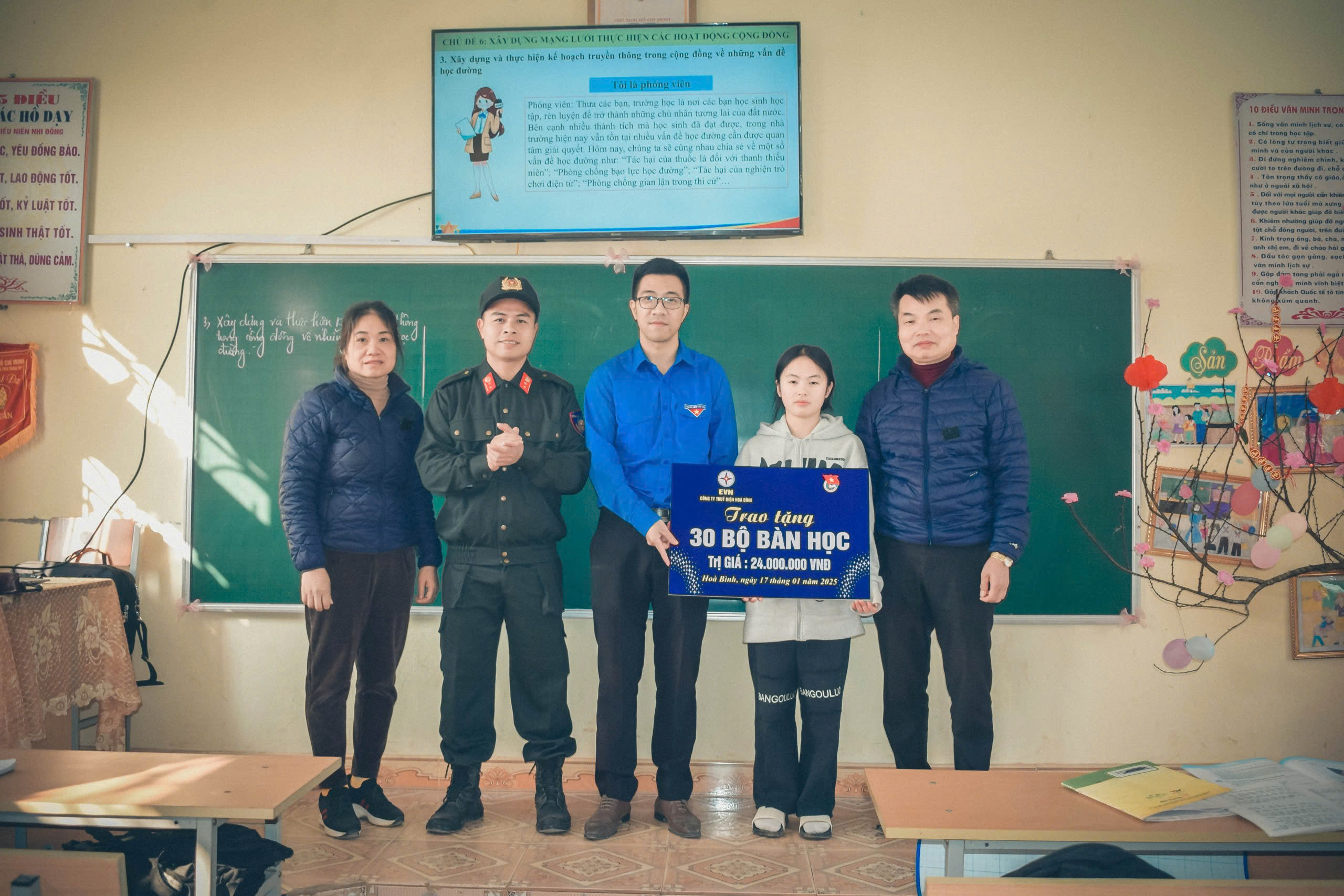 Trong chương trình, Đoàn Thanh niên Công ty thủy điện Hoà Bình đã trao tặng 30 bộ bàn ghế (trị giá 24 triệu đồng) cho nhà trường, và 250 áo ấm trao tận tay cho các em học sinh từ khối lớp 1 tới lớp 9.