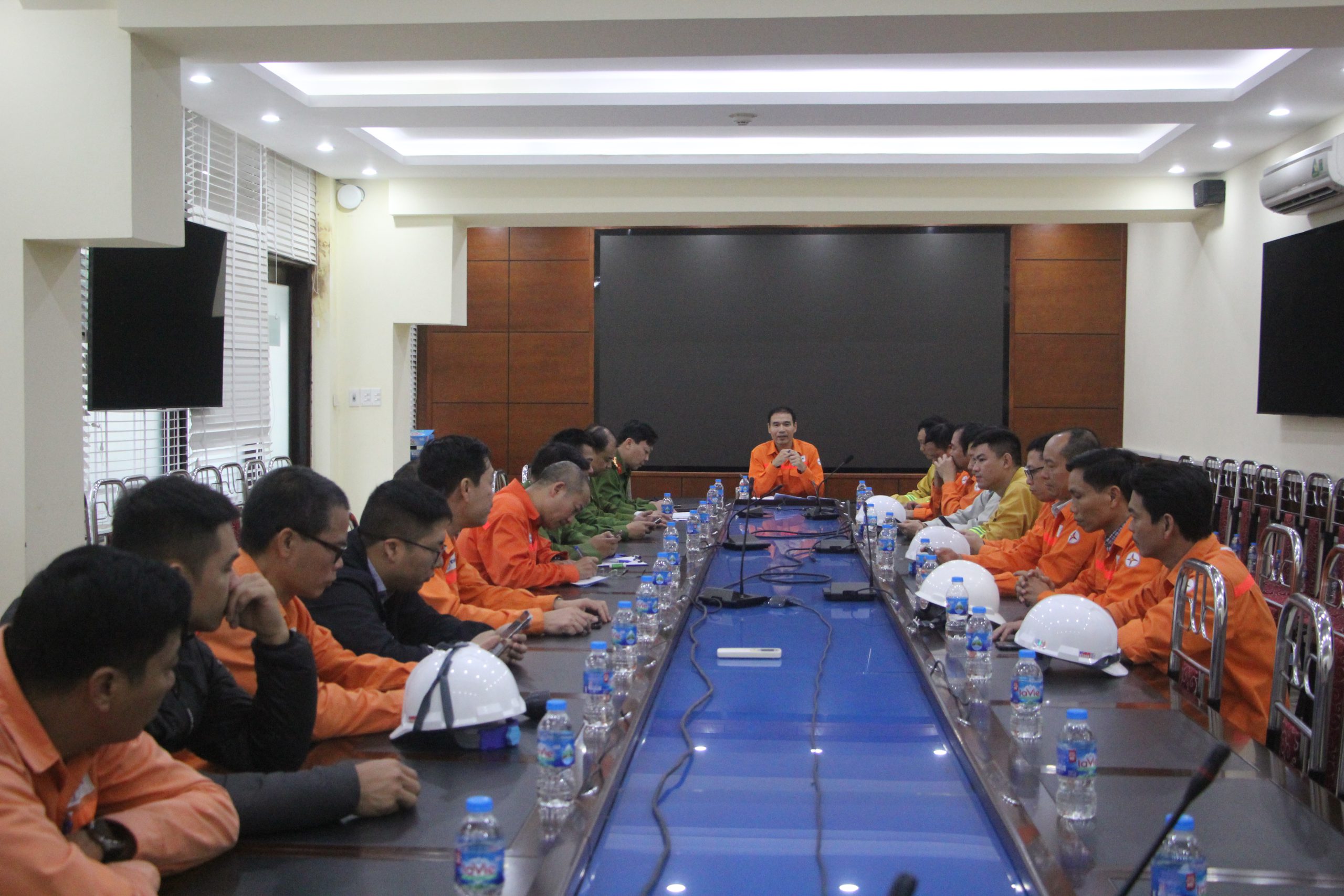Ngày 16/11/2023 thực hiện phương án diễn tập chữa cháy và cứu hộ cứu nạn, đội chữa cháy chuyên ngành Công ty Thủy điện Hòa Bình, đã tổ chức diễn tập chữa cháy với sự tham gia phối hợp của lực lượng cảnh sát PCCC công an tỉnh Hòa Bình. Vị trí xuất hiện đám cháy tại hầm cáp KCK8-3 trong ngầm, đây là vị trí tiếp cận để chữa cháy rất khó khăn do lối vào hẹp. Khi hiệu lệnh báo cháy vang lên, các thành viên đội chữa cháy chuyên ngành Công ty với trang bị chữa cháy đã nhanh chóng có mặt tại điểm tập kết, nghe mệnh lệnh phân công của chỉ huy chữa cháy và các lưu ý về biện pháp phòng độc khi tiếp cận đám cháy. Đội chữa cháy được chia làm hai hướng để tiếp cận đám cháy, xe chữa cháy của Công ty đã nhanh chóng di chuyển vào đường hầm TKT2 phối hợp kéo ống phun nước đến vị trí đám cháy. Chỉ ít phút sau khi có hiệu lệnh báo cháy, hai xe chữa cháy cùng lực lượng chuyên nghiệp của phòng cảnh sát chữa cháy công an tỉnh Hòa Bình đã có mặt tham gia phối hợp diễn tập chữa cháy. Tại hiên trường, những chiến sỹ cảnh sát chữa cháy công an tỉnh Hòa Bình nhanh chóng nắm bắt diễn biến vị trí đám cháy, để triển khai phương tiện chữa cháy tiếp cận đám cháy. Sau khi kết thúc diễn tập chữa cháy là cuộc họp đánh giá, rút kinh nghiệm trong công tác tổ chức, triển khai chữa cháy khi có cháy xảy ra. Tại buổi họp sau diễn tập, Ông Trần Văn Hòa, Phó Giám đốc-Trưởng Ban chỉ đạo diễn tập chủ trì cuộc họp, sau khi nghe báo cáo đánh giá việc thực hiện chữa cháy tại hiện trường, sự phối hợp giữa các bên, cùng ý kiến chuyên môn của lãnh đạo phòng cảnh sát PCCC công an tỉnh Hòa Bình, ông Trần Văn Hòa đã kết luận, buổi diễn tập đã đạt được những mục tiêu đề ra, thực hiện tốt nội dung về phối hợp giữa đội chữa cháy chuyên ngành của Công ty và lực lượng cảnh sát PCCC công an tỉnh Hòa Bình, qua mỗi lần diễn tập chúng ta thấy những vấn đề cần rút kinh nghiệm, để từ đó có được những phương án tối ưu hơn trong công tác chữa cháy.