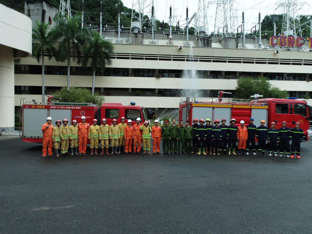 Công ty Thủy điện Hòa Bình là công trình trọng điểm an ninh quốc gia, với vị trí địa lý hết sức thuận lợi, nằm ngay gần trung tâm thành phố Hòa Bình. Vì vậy, việc phối hợp với Công an tỉnh Hòa Bình trong công tác bảo vệ an ninh trật tự, an toàn công trình và công tác phòng cháy chữa cháy có nhiều thuận lợi. Là đơn vị sản xuất điện, nhưng công trình có đặc thù ngầm trong núi nên yêu cầu về công tác phòng cháy và chữa cháy rất nghiêm ngặt. Công ty đã thành lập đội chữa cháy chuyên ngành gồm 53 đồng chí là CBCNV từ các đơn vị trong Công ty tại Quyết định số 69/QĐ-TĐHB ngày 23/02/2023; và đội PCCC&CNCH cơ sở tại Kho Bãi nặng gồm 10 đồng chí theo Quyết định số70/QĐ-TĐHB ngày 23/02/2023. Đội chữa cháy chia làm 5 tổ công tác, được trang bị một xe chữa cháy chuyên nghiệp có dung tích (3,6 m3 nước + 0,4 m3 bọt).