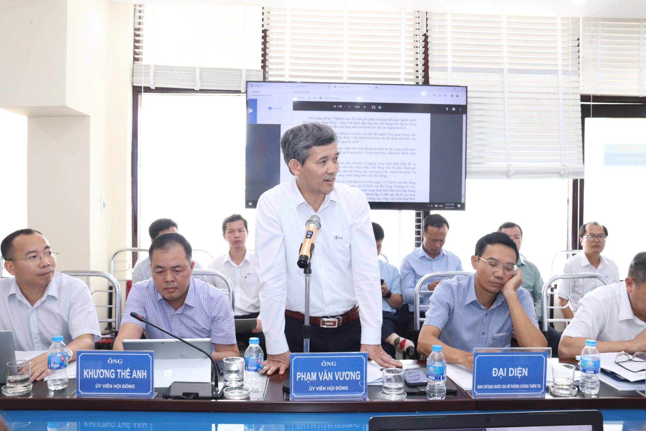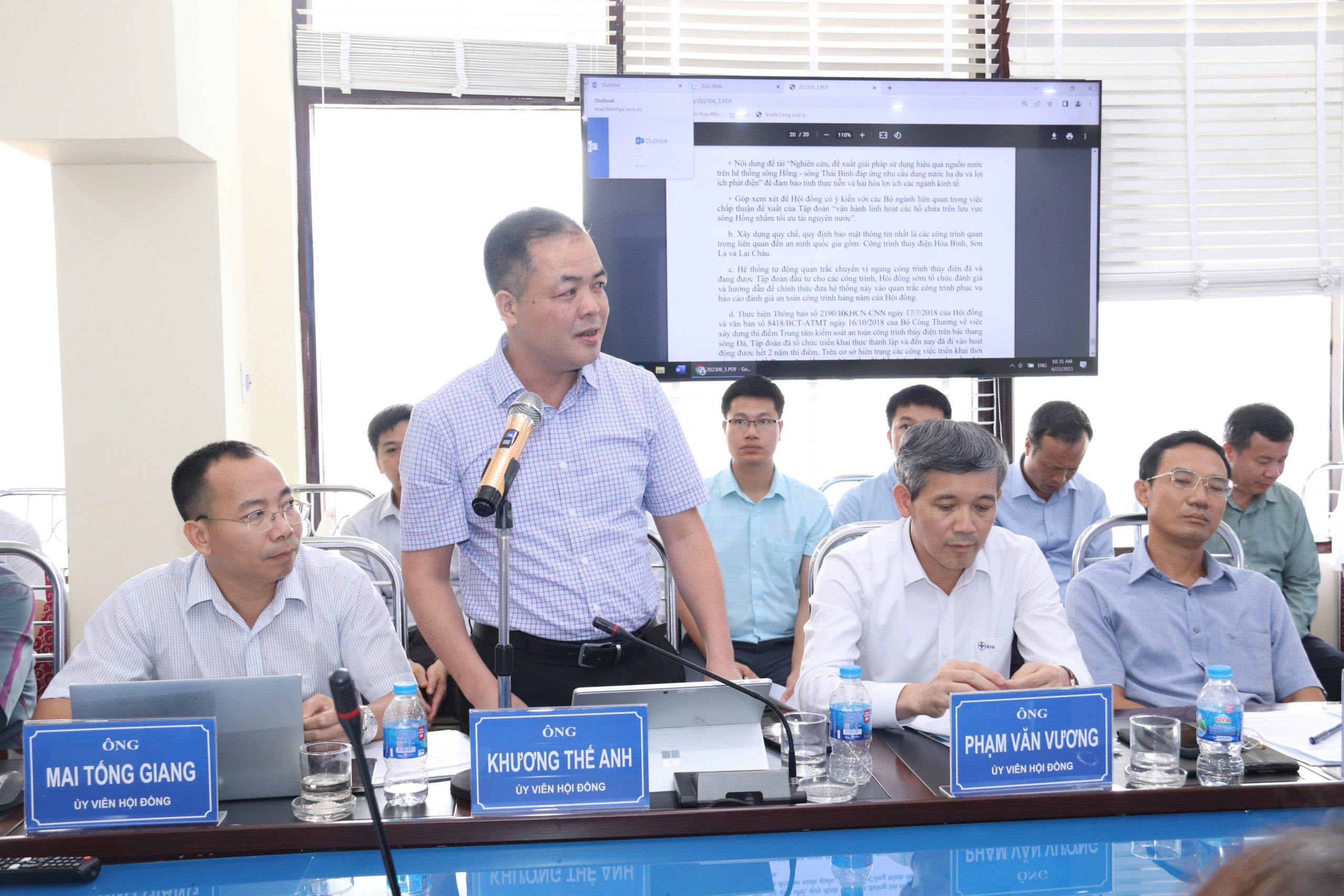 Lãnh đạo các Công ty Thủy điện Hòa Bình, Sơn La, Huội Quảng – Bản Chát phát biểu đề xuất với Hội đồng có ý kiến với cơ quan chức năng về việc linh hoạt hơn trong việc giữ, xả nước điều tiết, để nâng cao hiệu quả hơn nữa cho các hồ chứa thủy điện. Ông Phạm Văn Vương, Giám đốc Công ty Thủy điện Hòa Bình cho biết, với thủy điện Hòa Bình kể từ khi đưa vào vận hành đến nay đã hơn 35 năm, việc đo đạc quan trắc công trình là nhiệm vụ suyên suốt kể từ khi đi vào vận hành, kết quả đo đạc đều nằm trong giá trị cho phép của thiết kế. Nhưng, để có được kết quả đánh giá sâu hơn về đập và công trình thủy công, chúng tôi đang tìm kiếm đơn vị có đội ngũ chuyên gia có đủ năng lực, kinh nghiệm thực hiện, để đánh giá tổng thể công trình sau hơn 35 năm vận hành.