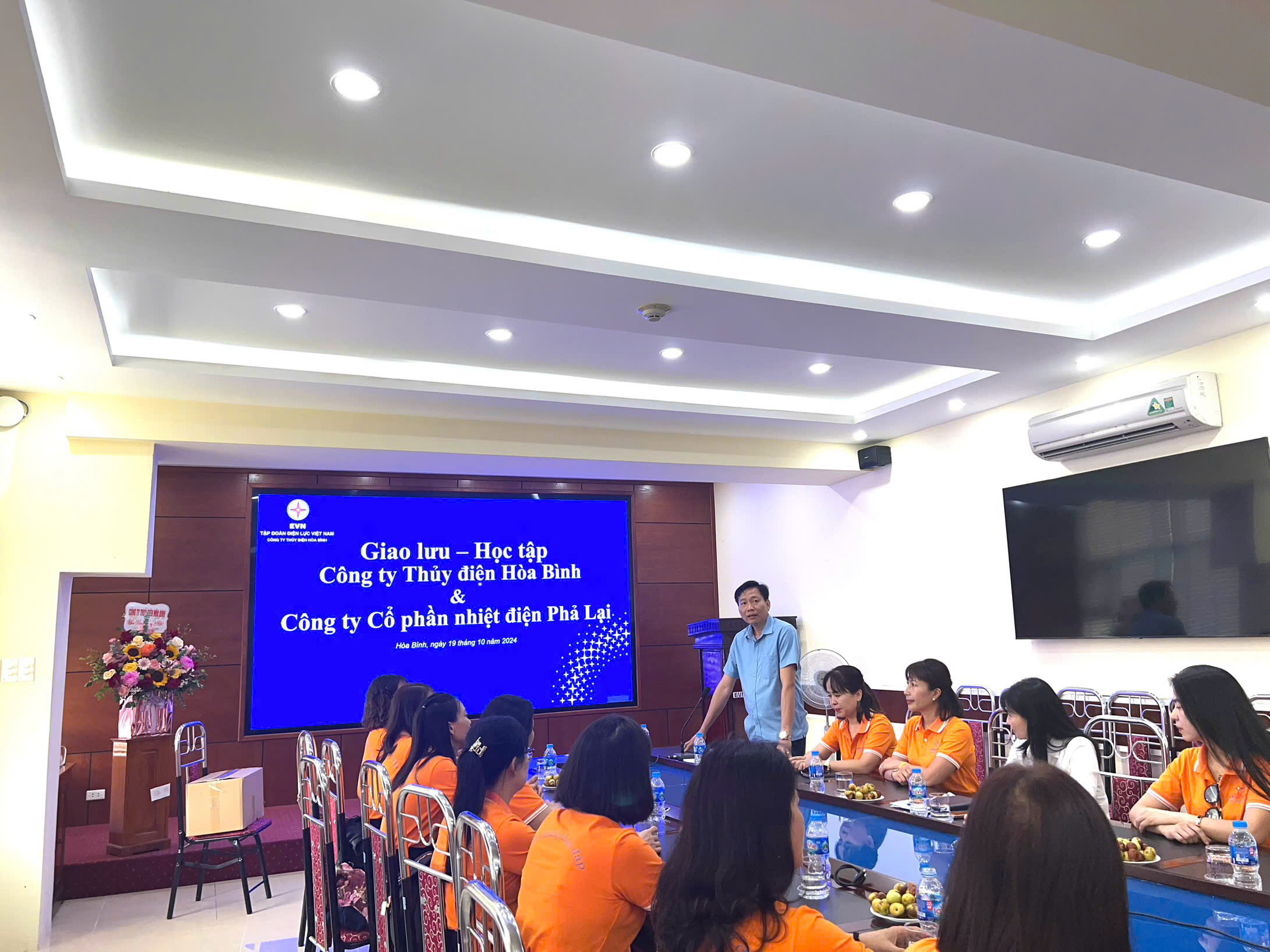Tại buổi giao lưu Ông Trần Minh Thùy đã bày tỏ sự vui mừng khi được đón tiếp đoàn Nữ CBCNV Công ty cổ phần Nhiệt điện Phả Lại đến thăm, giao lưu trao đổi học tập kinh nghiệm và chúc Đoàn thu được nhiều kết quả, tích lũy thêm được nhiều kinh nghiệm trong công tác, chúc các thành viên trong Đoàn có nhiều sức khỏe; thay mặt Ban lãnh đạo Công ty Thủy điện Hòa Bình có bó hoa tươi thắm chúc mừng chị em Nữ CBCNV Công ty cổ phần Nhiệt điện Phả Lại nhân ngày 20-10 và gửi những lời chúc tốt đẹp tới toàn thể nữ công hai đơn vị, chúc chị em luôn là lực lượng đi đầu trong việc thực hiện “Văn hóa doanh nghiệp”, nâng cao chất lượng trong giao tiếp ứng xử, cùng nhau xây dựng và tạo nên sức mạnh tập thể, đoàn kết giúp đỡ nhau cùng tiến bộ. Phấn đấu cùng toàn thể CBCNV của hai đơn vị hoàn thành tốt các chỉ tiêu sản xuất kinh doanh năm 2024.