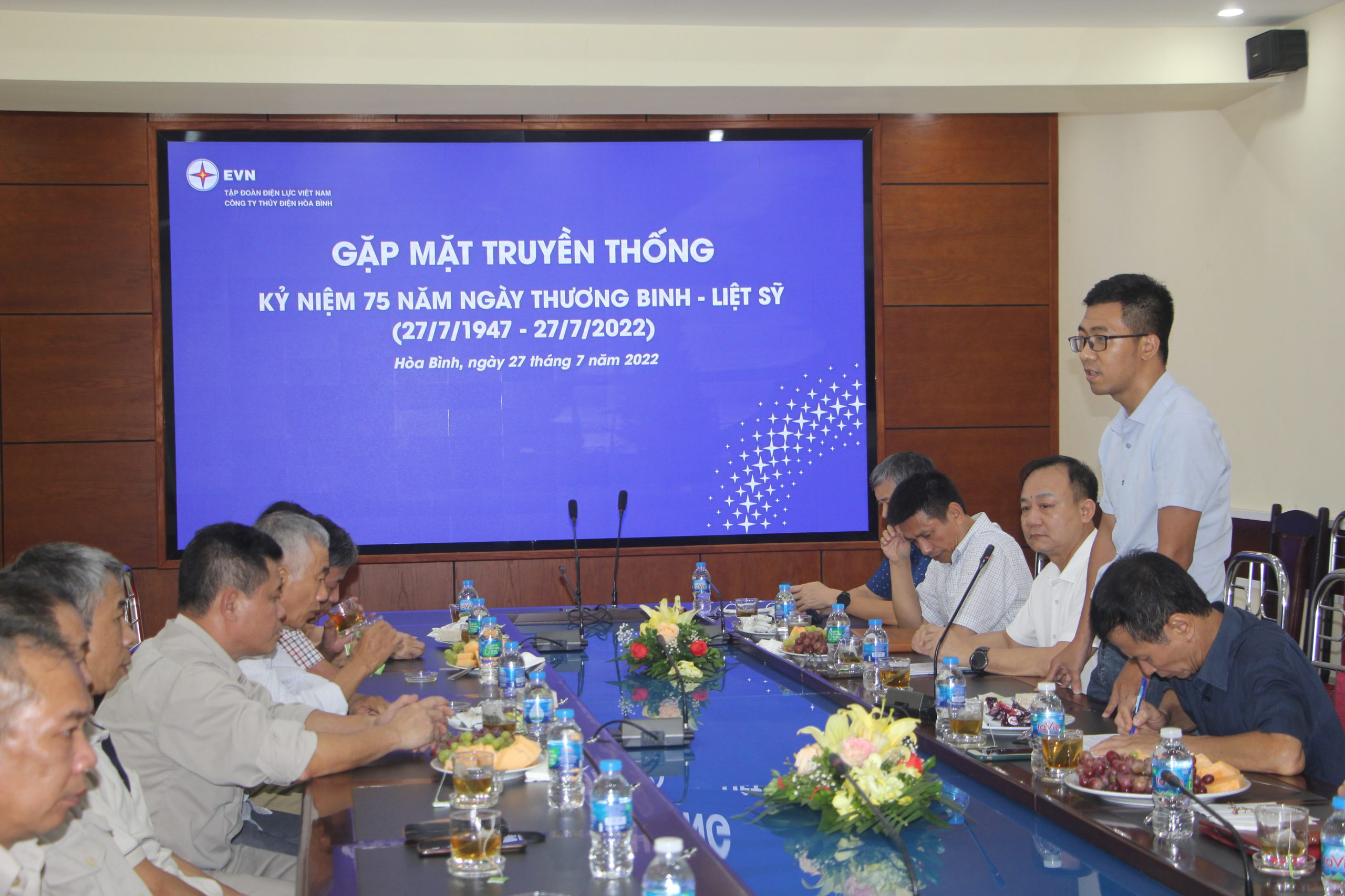Đại diện Đoàn thanh niên Công ty, phó Bí thư Phạm Duy Tùng cũng nói lên cảm nghĩ của thế hệ trẻ, luôn biết ơn các anh hùng, Liệt sỹ, Thương binh đã cống hiến và hy sinh để cho thế hệ trẻ chúng cháu hôm nay, được sống trên đất nước hòa bình và phát triển; chúng cháu hứa sẽ nỗ lực phấn đấu trong học tập, công tác để nối tiếp những công việc của các cô các chú tại Công ty Thủy điện Hòa Bình, tiếp tục các hoạt động của tuổi trẻ về công tác đền ơn đáp nghĩa, xây dựng xã hội nhân văn.