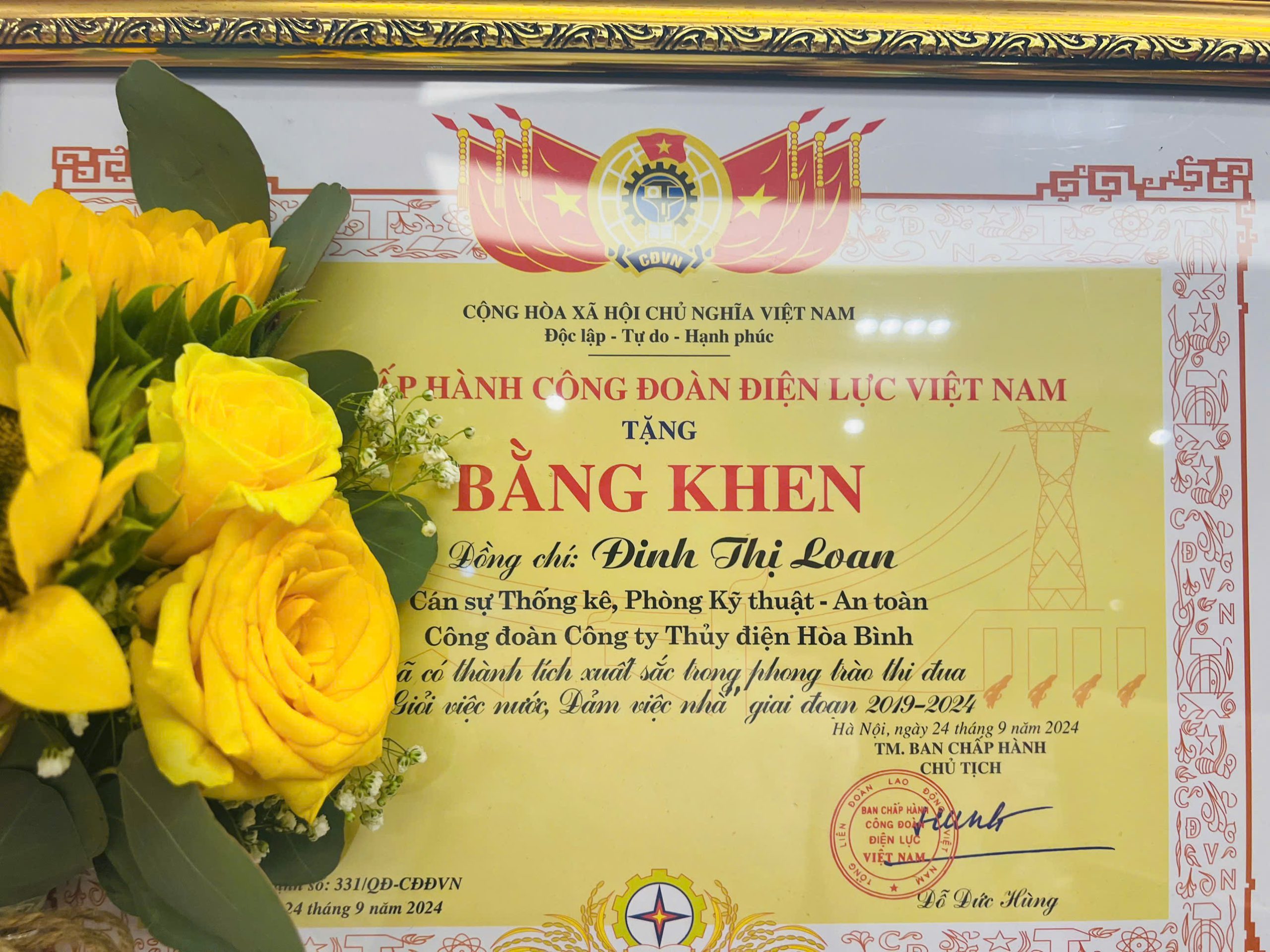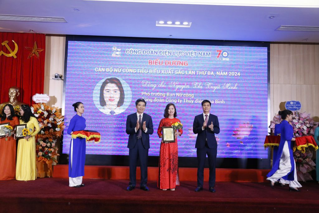 Tại Hội nghị Công đoàn Điện lực Việt Nam đã khen thưởng 23 tập thể và 50 cá nhân tiêu biểu trong việc triển khai phòng trào thi đua “Giỏi việc nước, đảm việc nhà” giai đoạn 2029-2024 và biểu dương 75 cán bộ nữ công tiêu biểu, xuất sắc. Trong đó Công ty Thủy điện Hòa Bình có 02 cá nhân là: chị Nguyễn Thị Tuyết Minh nữ cán bộ tiêu biểu xuất sắc được nhận Bằng khen biểu dương của Công đoàn Điện lực Việt Nam, Chị Đinh Thị Loan nhận Bằng khen của Công đoàn Điện lực Việt Nam đạt thành tích xuất sắc phong trào thi đua “Giỏi việc nước, đảm việc nhà” giai đoạn 2029-2024.