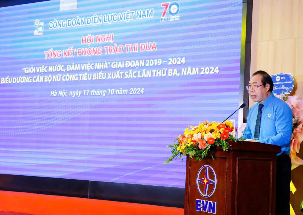 Phát biểu tại Hội nghị đồng chí Đỗ Đức Hùng, Chủ tịch Công đoàn Điện lực Việt Nam cho biết: Giai đoạn 2019 – 2024, được sự quan tâm chỉ đạo của Tổng Liên đoàn LĐVN, của các cấp ủy Đảng, sự phối hợp chỉ đạo của chuyên môn, Công đoàn và Ban Vì sự tiến bộ phụ nữ EVN, phong trào thi đua “Giỏi việc nước, đảm việc nhà” trong nữ CNVCLĐ Tập đoàn Điện lực Việt Nam đã góp phần thiết thực vào hoàn thành nhiệm vụ kế hoạch của Tập đoàn và các đơn vị trong giai đoạn khó khăn vừa qua. Đồng thời, góp phần xây dựng gia đình no ấm, bình đẳng, tiến bộ, hạnh phúc.