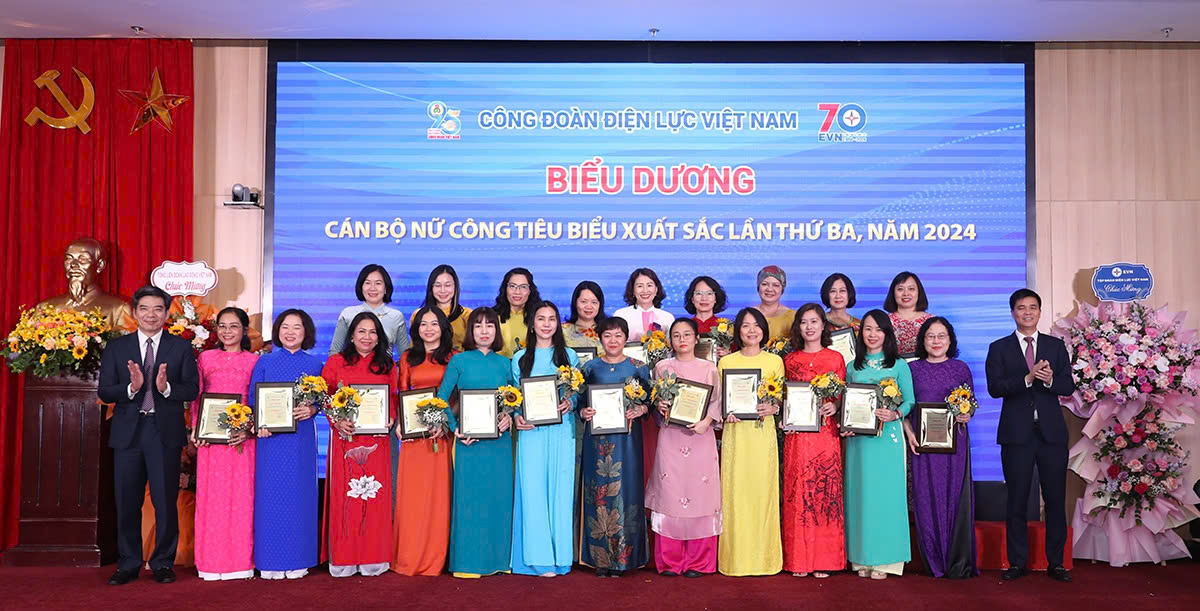 Chiều ngày 11.10 tại Hội trường trụ sở EVN, Công đoàn Điện lực Việt Nam tổ chức Hội nghị Tổng kết 5 năm phong trào thi đua “Giỏi việc nước, đảm việc nhà” giai đoạn 2019-2024 và Biểu dương khen thưởng cán bộ Nữ công tiêu biểu xuất sắc lần thứ 3. Lễ biểu dương, khen thưởng được tổ chức nhằm đẩy mạnh các phong trào thi đua, động viên, khích lệ, tạo động lực thi đua trong các cấp công đoàn, thiết thực để kỷ niệm 70 năm ngày Truyền thống ngành Điện lực Việt Nam (21.12.1954 -21.12.2024) và chào mừng ngày Phụ nữ Việt Nam 20.10.
