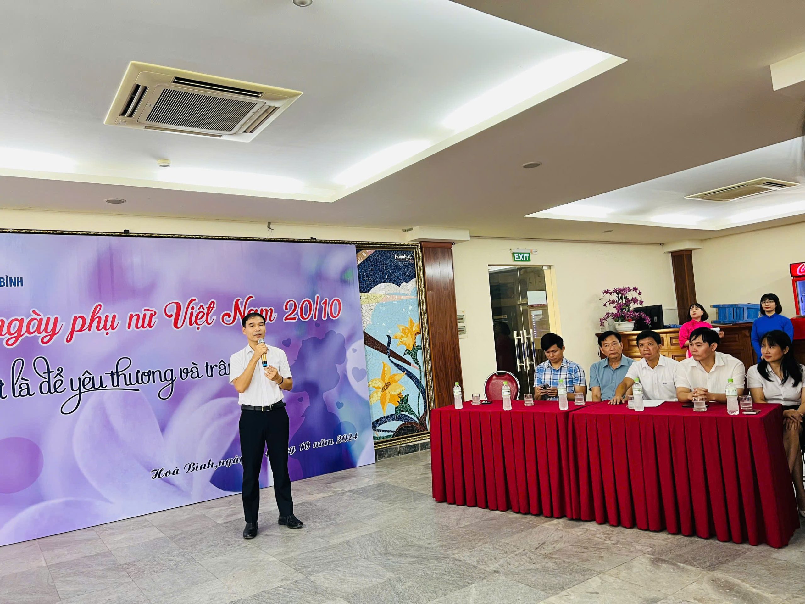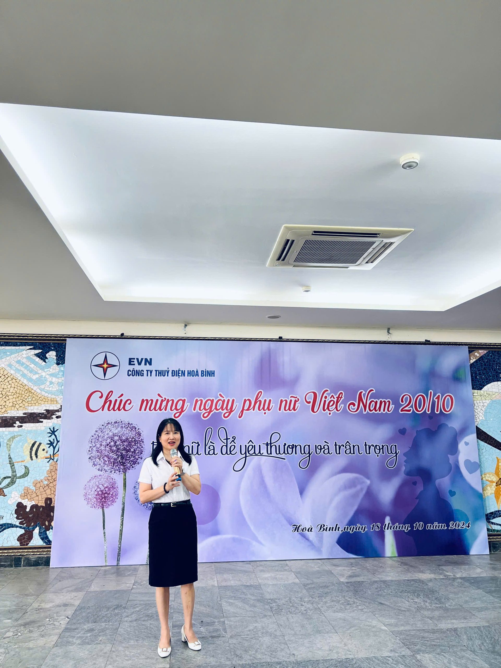 Sáng nay 18/10/2024, Công ty Thủy điện Hòa Bình tổ chức gặp mặt nhân Kỷ niệm 94 năm ngày thành lập Hội Liên hiệp Phụ nữ Việt Nam (20/10/1930 – 20/10/2024) và 14 năm ngày Phụ nữ Việt Nam (20/10/2010 – 20/10/2024). Được sự quan tâm của Ban lãnh đạo Công ty, Công đoàn cùng Ban nữ công Công ty Thủy điện Hòa Bình long trọng tổ chức kỷ niệm 94 năm ngày thành lập Hội LHPN Việt Nam và Ngày Phụ nữ Việt Nam 20/10. Đến dự lễ kỷ niệm có ông Trần Văn Hòa – Phó Bí thư Đảng ủy, Phó Giám đốc Công ty – Chủ tịch Công đoàn, các đồng chí trong Ban giám đốc, Ban chấp hành Công đoàn, Bí thư đoàn thanh niên Công ty cùng sự hiện diện của hơn 60 nữ CBCNV Công ty.
