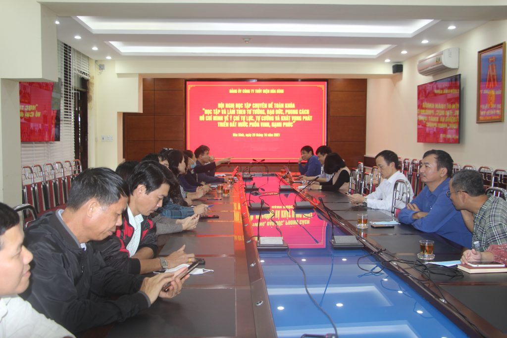 Ngày 29/10/2021, Đảng ủy Công ty Thủy điện Hòa Bình đã tổ chức Hội nghị học tập và triển khai thực hiện chuyên đề toàn khóa “Học tập và làm theo tư tưởng, đạo đức, phong cách Hồ Chí Minh về ý chí tự lực, tự cường và khát vọng phát triển đất nước phồn vinh, hạnh phúc” do Đảng ủy Tập đoàn Điện lực Việt Nam tổ chức.