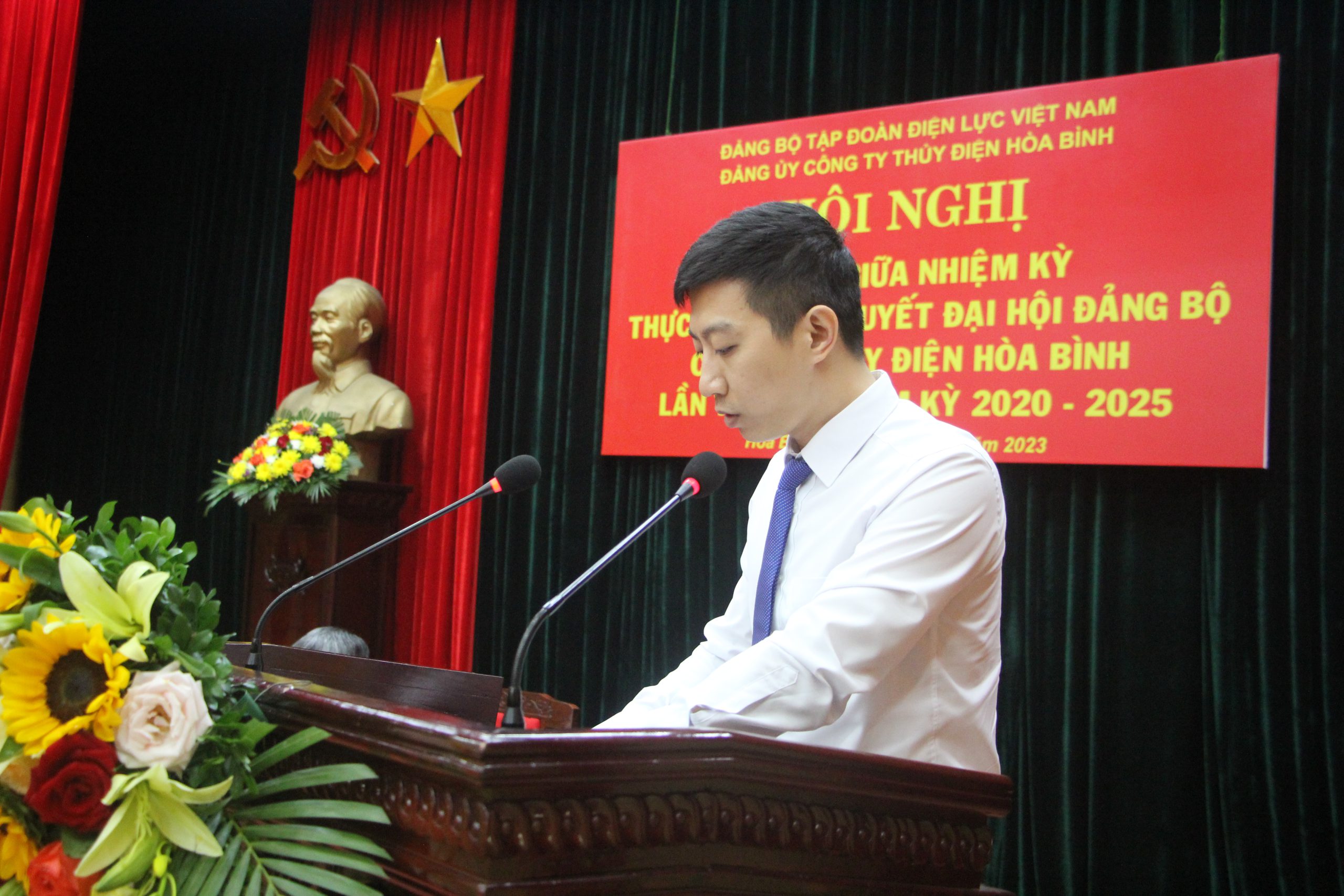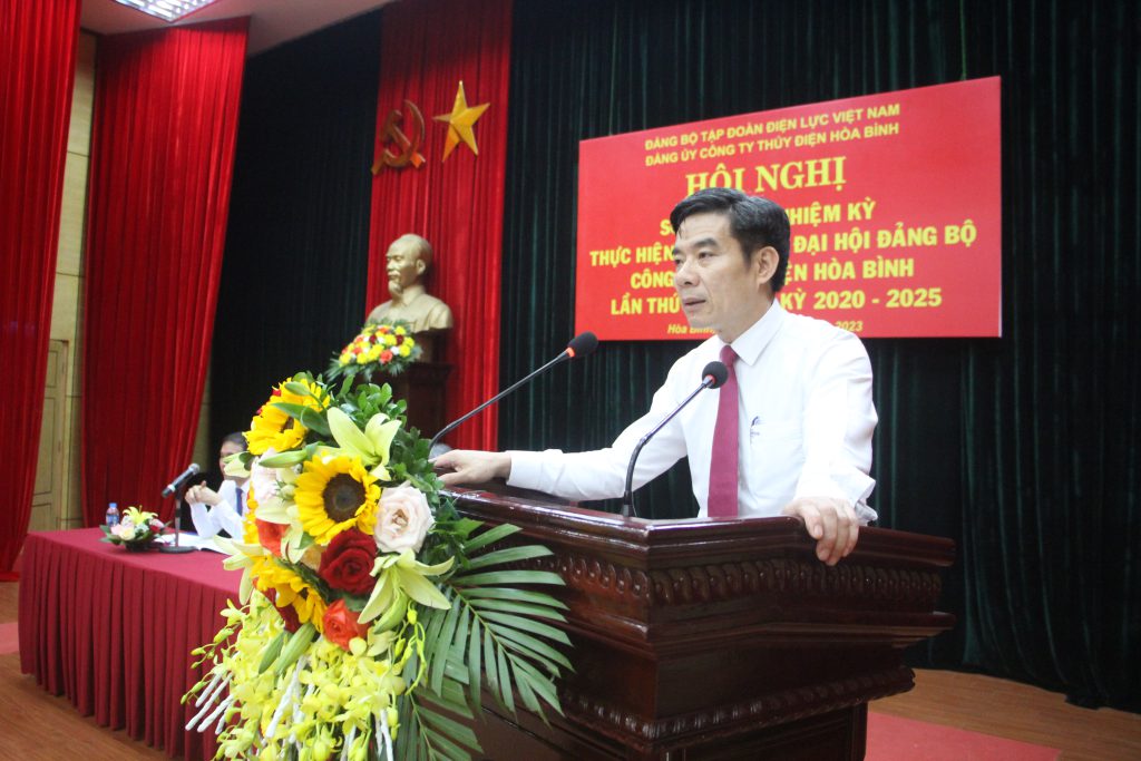Hội nghị vinh dự được nghe ý kiến phát biểu chỉ đạo tại hội nghị của đồng chí Nguyễn Hữu Tuấn – Phó Bí thư thường trực Đảng ủy EVN, đồng chí đánh giá cao kết quả thực hiện trong nửa nhiệm kỳ của Nghị quyết của Đại hội Đảng bộ Công ty Thủy điện Hòa Bình lần thứ XI, nhiệm kỳ 2020-2025 do đồng chí Bí Thư Đảng ủy Công ty trình bày, đồng thời nhấn mạnh trong thời gian còn lại của nhiệm kỳ từ nay đến năm 2025 đảng bộ Công ty cần tổ chức tốt các nhiệm vụ sau: