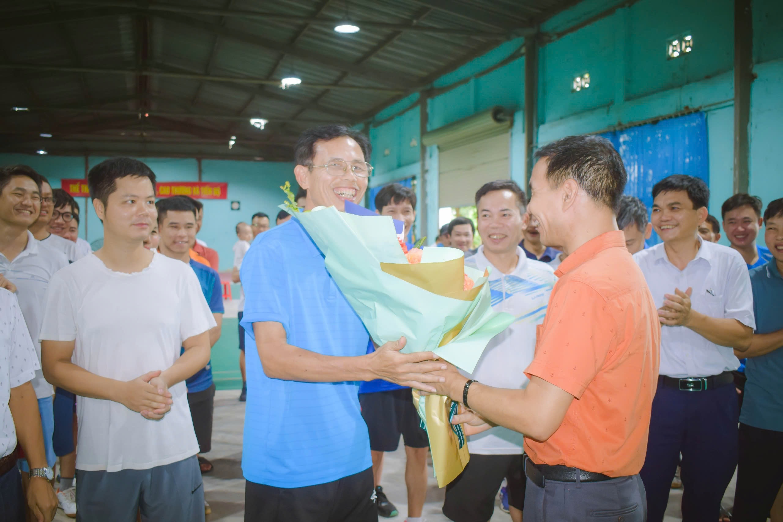 Đồng chí Trần Văn Hòa, Chủ tịch Công đoàn Công ty tặng hoa các vận động viên