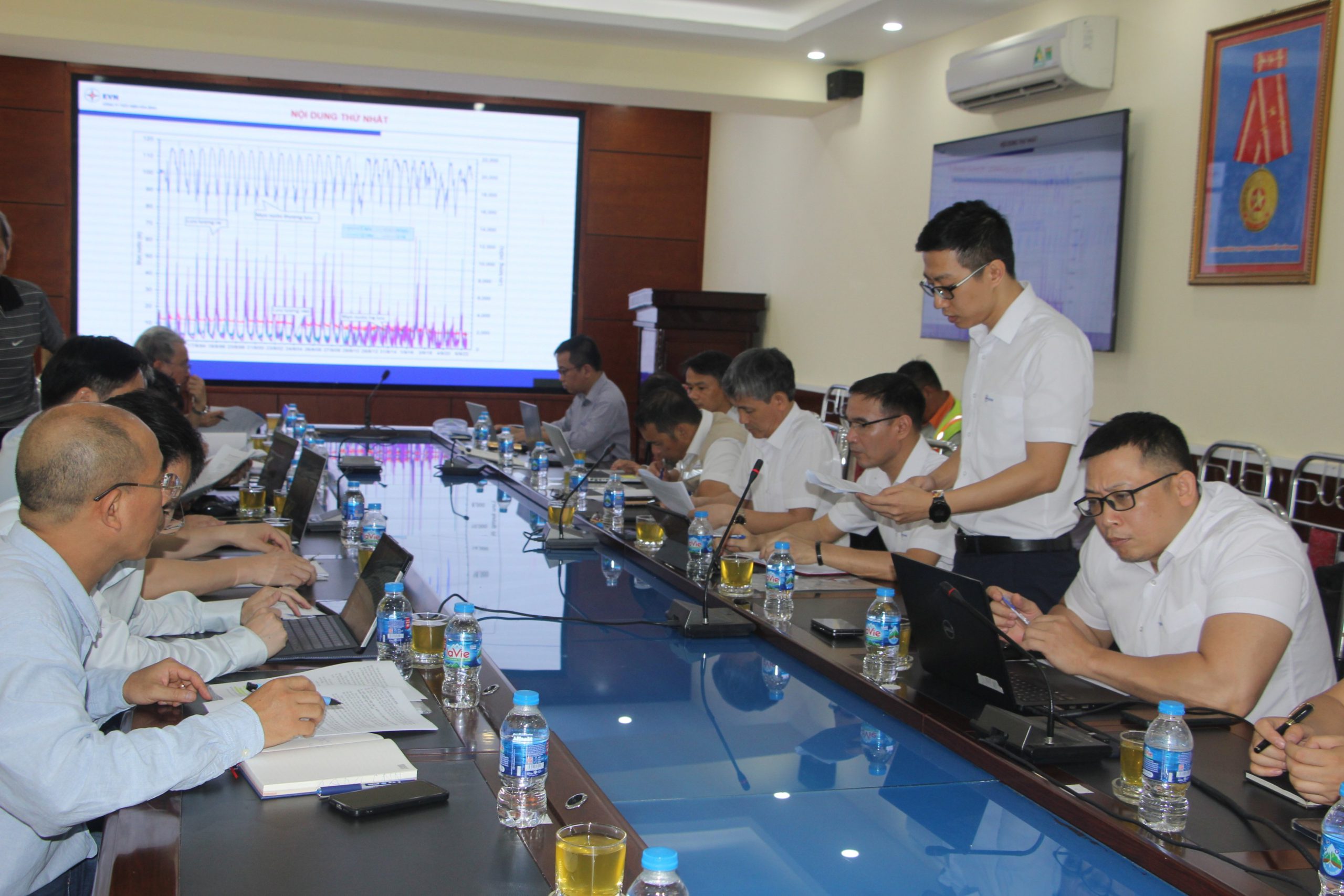 Đồng chí Phạm Văn Vương, Giám đốc Công ty thủy điện Hòa Bình báo cáo tại cuộc họp