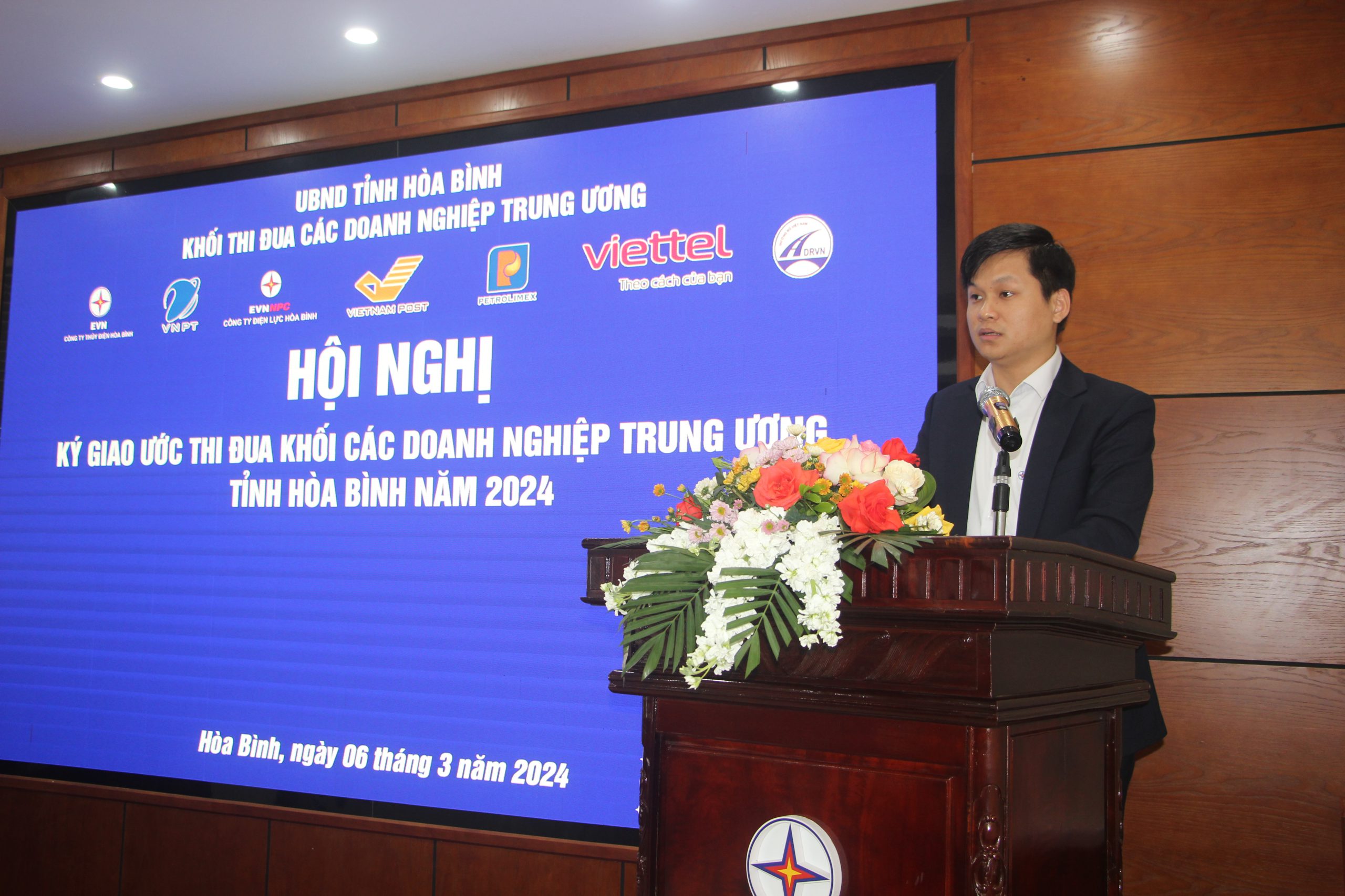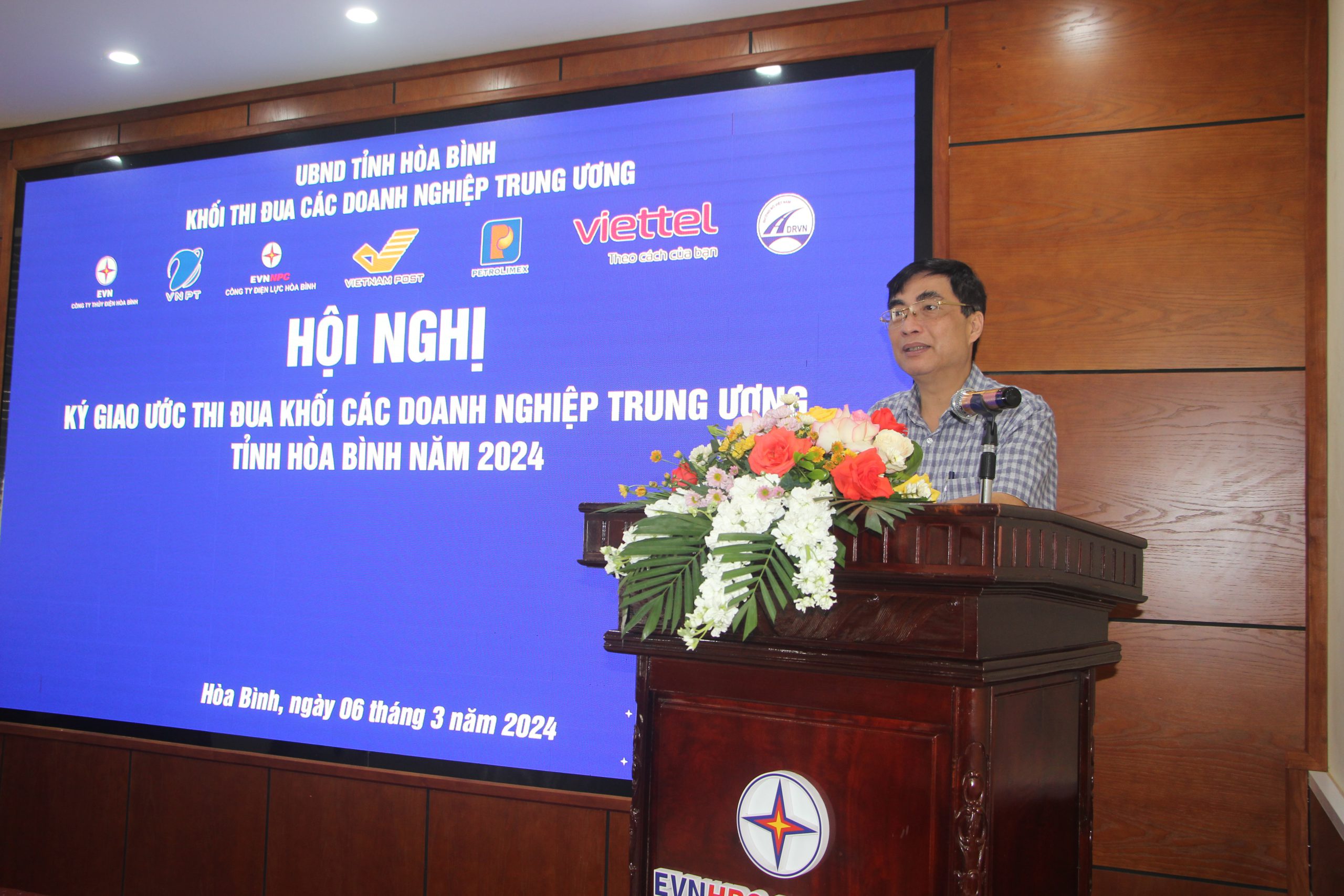 Hội nghị được nghe phát biểu khai mạc của ông Lê Xuân Quyết, Phó Giám đốc Công ty Thủy điện Hòa Bình, đơn vị đảm nhiệm Trưởng Khối các doanh nghiệp trung ương đóng trên địa bàn tỉnh Hòa Bình năm 2024, và nội dung ký giao ước thi đua của Khối.