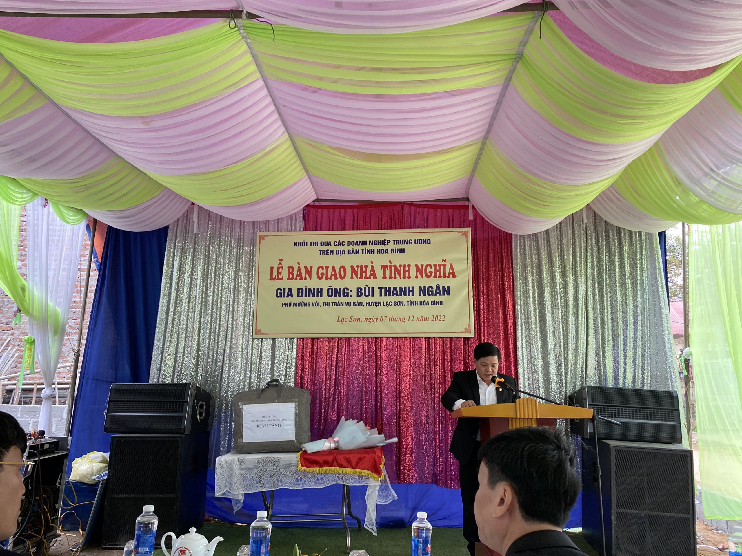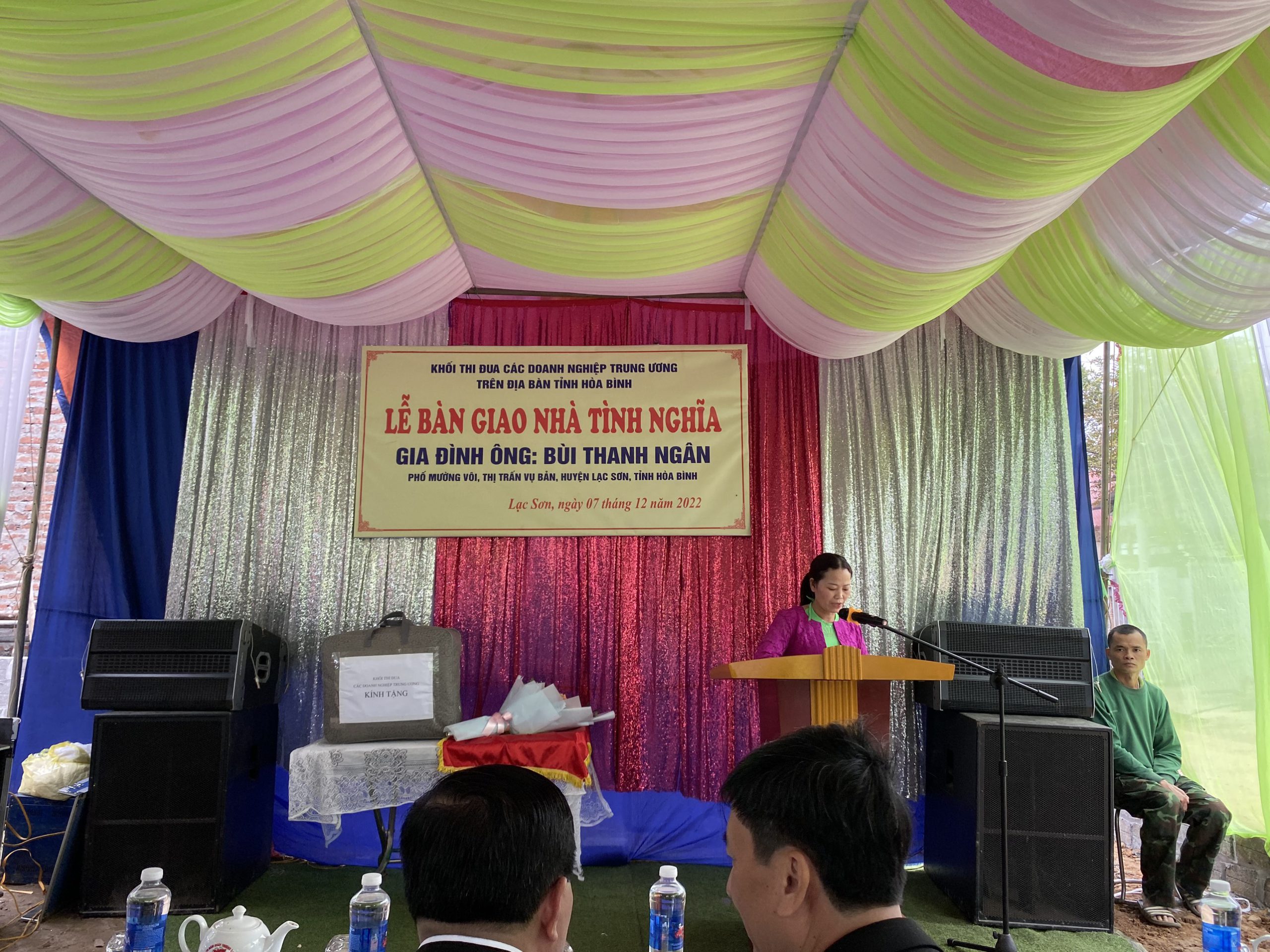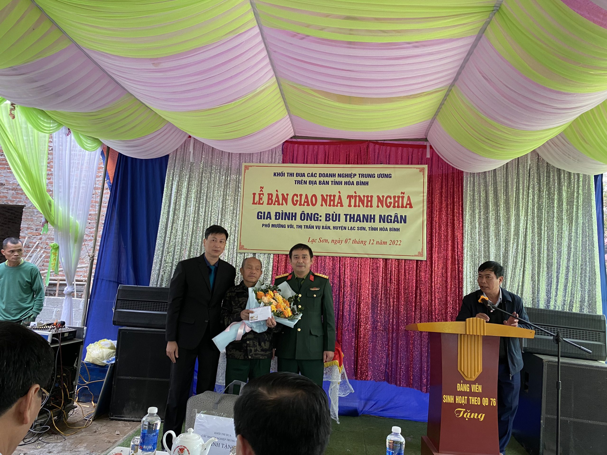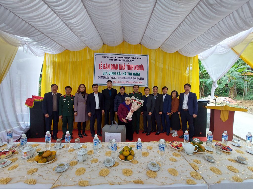 Ngày 07/12/2022, tại xóm Tòng, xã Tòng Đậu, huyện Mai Châu tỉnh Hòa Bình Khối đã bàn giao nhà tình nghĩa cho bà Hà Thị Năm là hộ gia đình dân tộc thiểu số (bà là vợ liệt sỹ) có hoàn cảnh đặc biệt khó khăn, là hộ nghèo của xã. Cùng ngày Khối cũng trao tặng nhà tình nghĩa cho ông Bùi Thanh Ngân, phố Mường Vôi, thị trấn Vụ Bản, huyện Lạc Sơn, tỉnh Hòa Bình; ông Bùi Thanh Ngân là nạn nhân nhiễm chất độc Da cam, cũng là hộ nghèo của xã. Đây là hoạt động có ý nghĩa thiết thực trong phong trào của Khối thi đua các Doanh nghiệp Trung ương trên địa bàn tỉnh Hòa Bình nhằm thực hiện chủ trương, đường lối của Đảng, chính sách pháp luật của nhà nước về công tác an sinh xã hội; góp phần vào phát triển kinh tế địa phương và xây dựng nông thôn mới trên địa bàn tỉnh Hòa Bình.