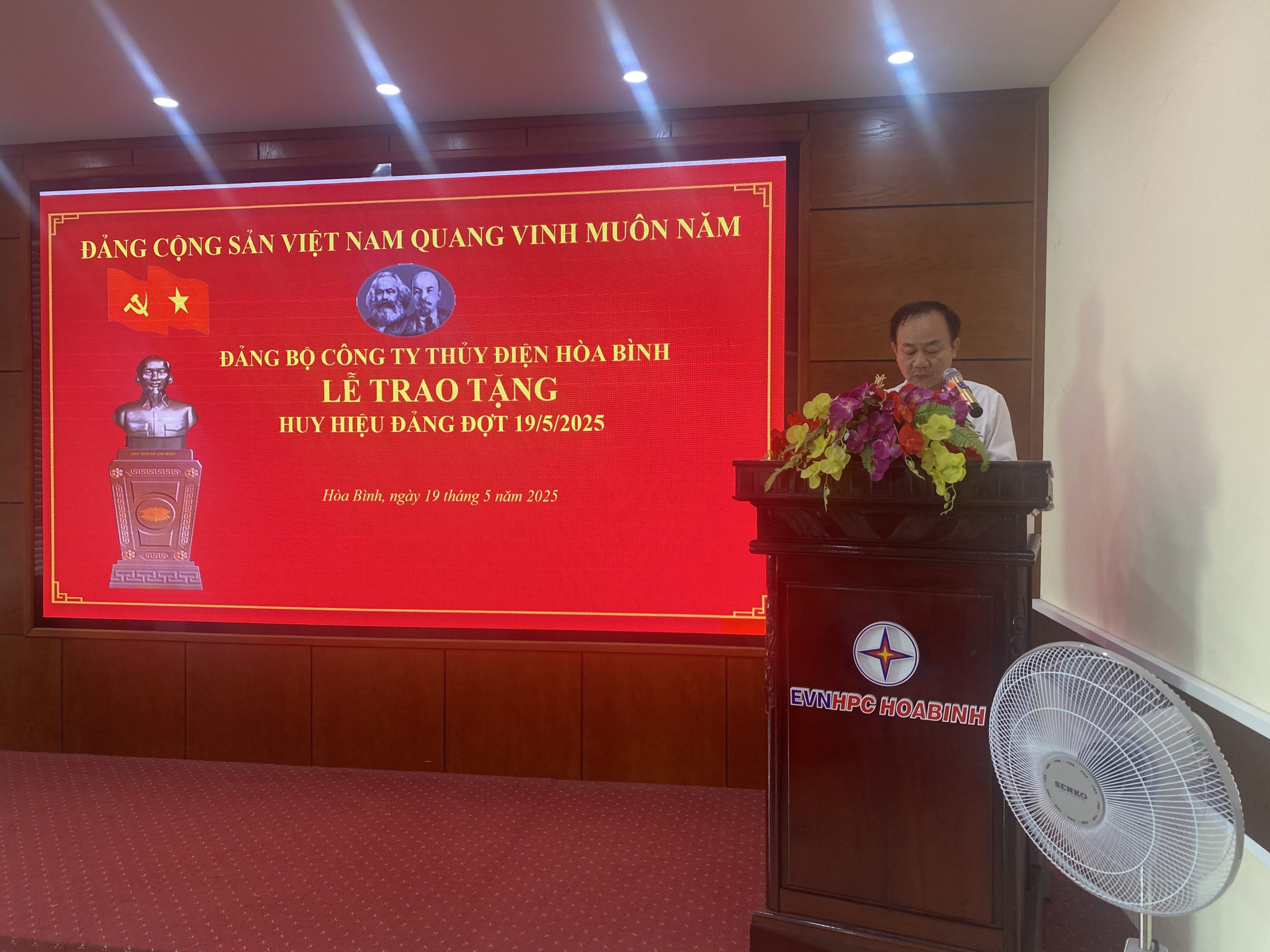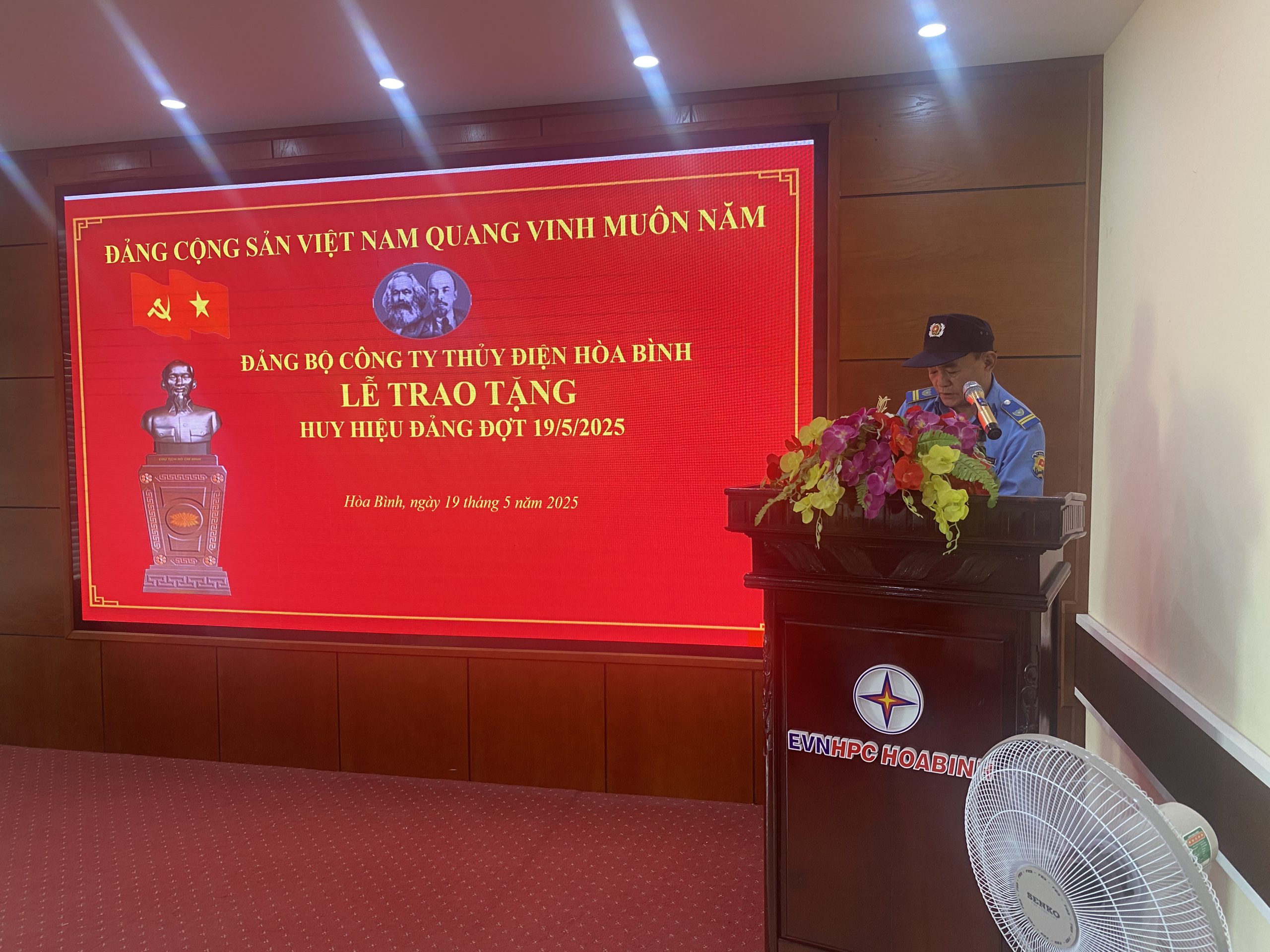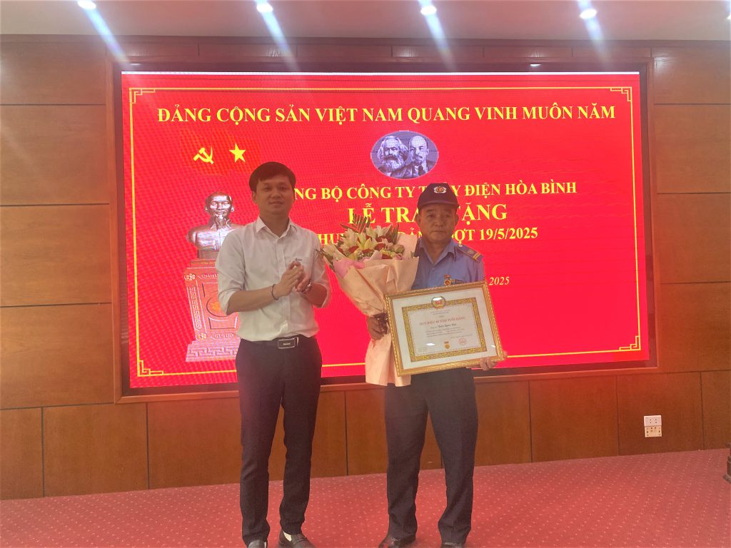 Chiều ngày 19/5/2025, nhân kỷ niệm 135 năm ngày sinh của Chủ tịch Hồ Chí Minh vĩ đại (19/5/1890 – 19/5/2025), Đảng bộ Công ty Thủy điện Hòa Bình tổ chức Lễ trao tặng Huy hiệu 40 năm tuổi Đảng cho đồng chí Trần Quốc Hải, đảng viên Chi bộ Phòng Hành chính và Lao động.