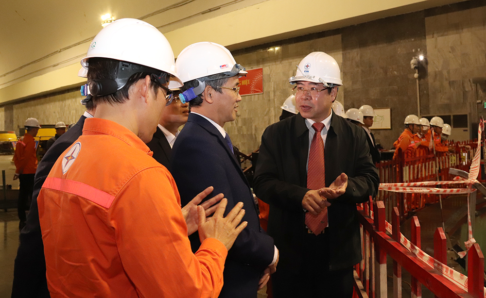 Chủ tịch Công đoàn Điện lực Việt Nam Đỗ Đức Hùng kiểm tra hiện trường thay bánh xe công tác H5 Nhà máy Thủy điện Hòa Bình