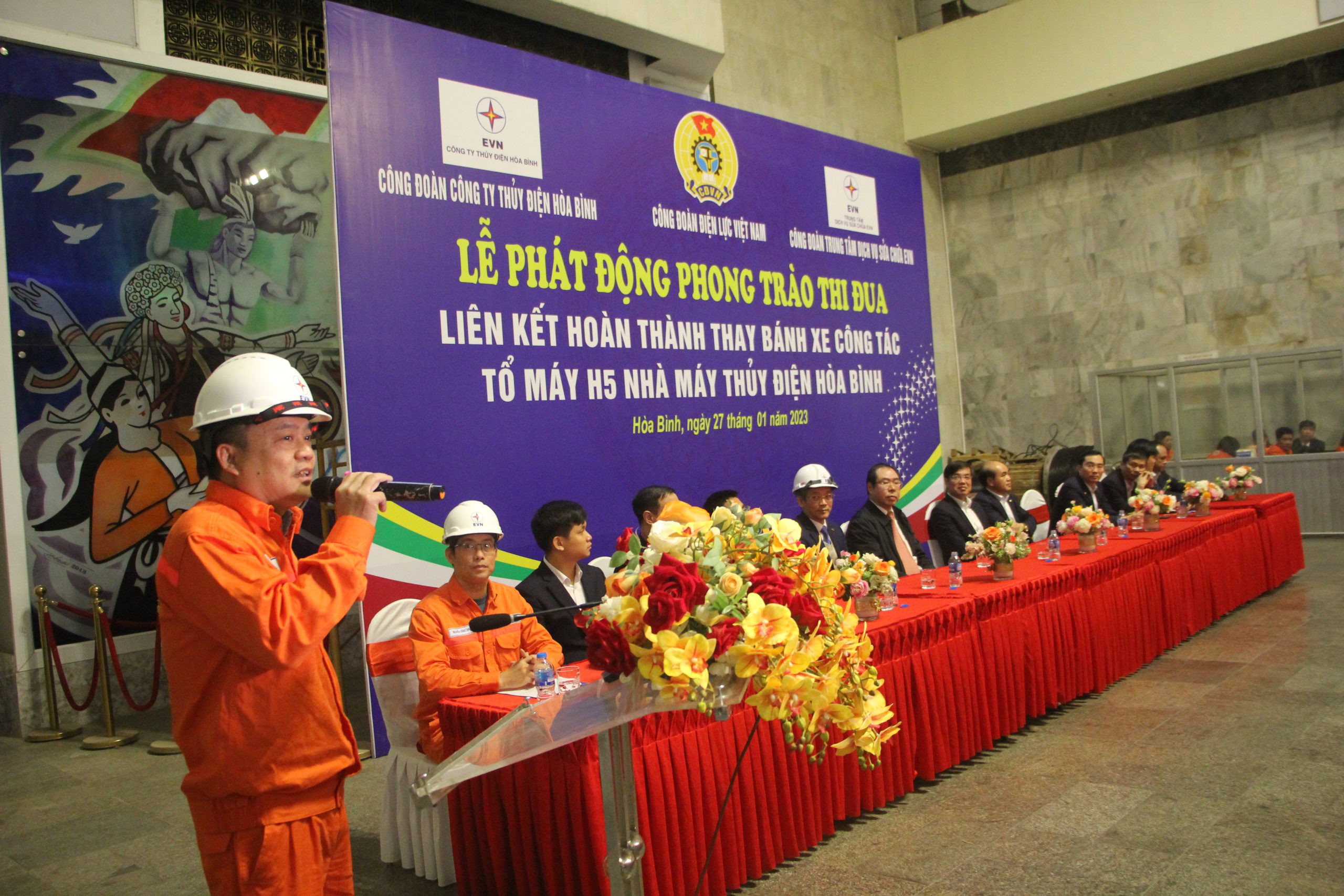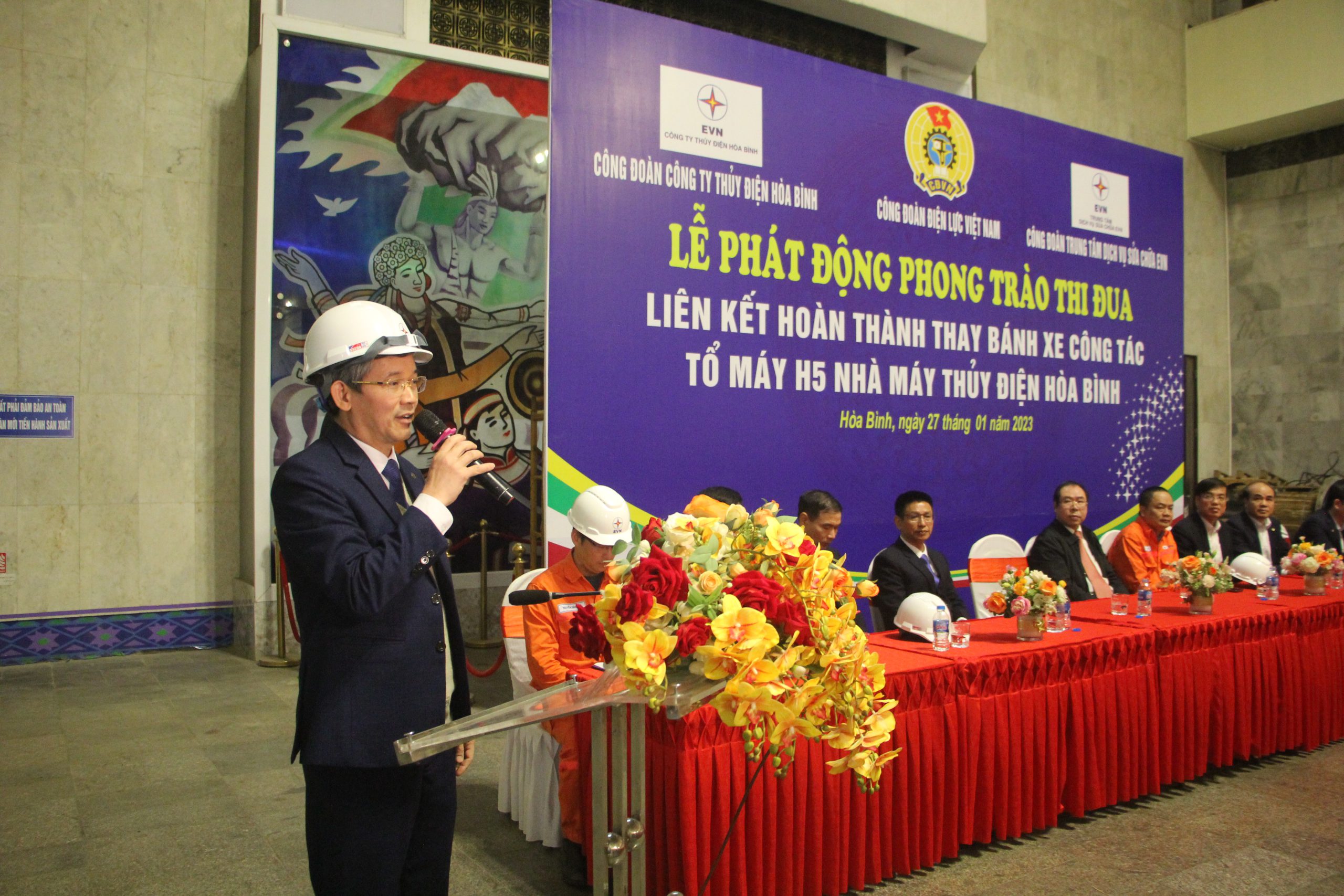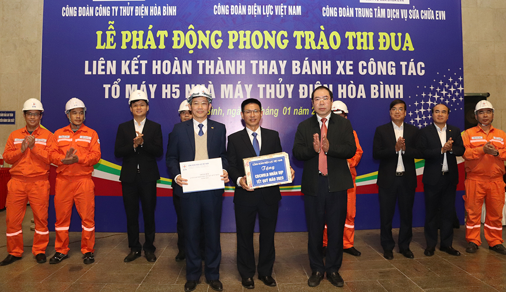 Ngày 27/1, tại Hòa Bình, Công đoàn Điện lực Việt Nam phối hợp với Trung tâm Dịch vụ sửa chữa EVN (EVNPSC) và Công ty Thủy điện Hòa Bình phát động thi đua liên kết hoàn thành thay bánh xe công tác tổ máy số 5 (H5) – Nhà máy Thủy điện Hòa Bình.