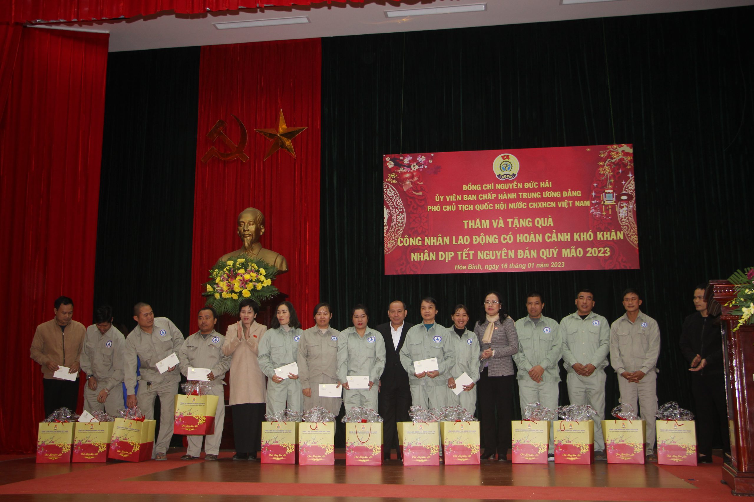 Nhân dịp Tết Nguyên đán Quý Mão 2023, sáng 16/01/2023 tại Công ty Thủy điện Hòa Bình, đồng chí Nguyễn Đức Hải, Ủy viên Trung ương Đảng, Phó Chủ tịch Quốc hội đã đến chúc tết và tặng quà công nhân lao động có hoàn cảnh khó khăn trên địa bàn tỉnh Hòa Bình.