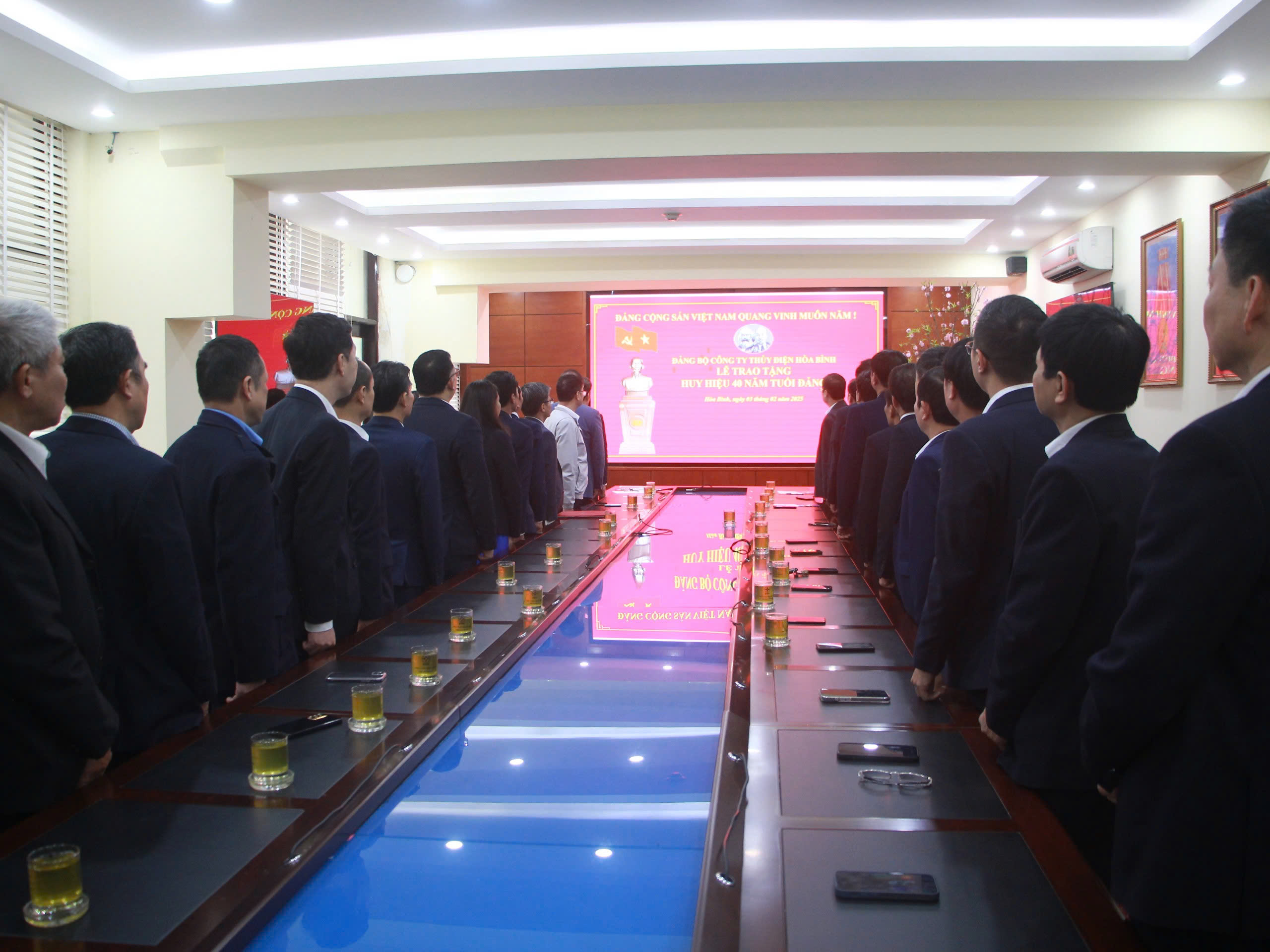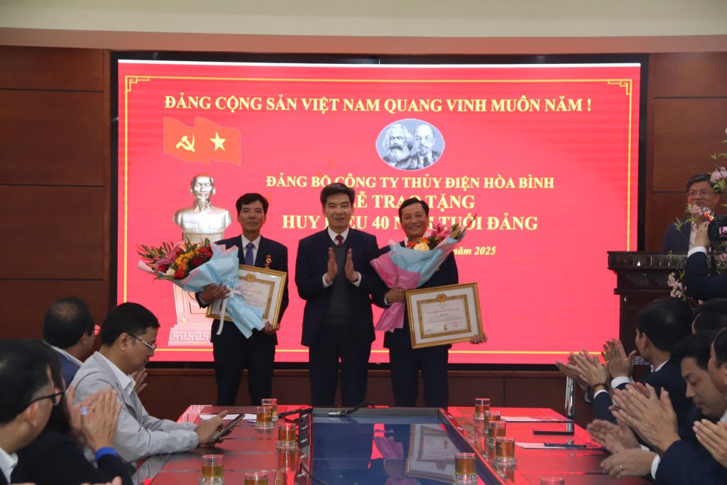Chiều ngày 03/02/2025, nhân kỷ niệm 95 năm ngày thành lập Đảng Cộng sản Việt Nam (03/02/1930 – 03/02/2025), Đảng bộ Công ty Thủy điện Hòa Bình long trọng tổ chức Lễ trao tặng Huy hiệu 40 năm tuổi Đảng cho đồng chí Đỗ Đức Mạnh – Kỹ thuật viên PCCC chi bộ phòng Kỹ thuật và An toàn và đồng chí Nguyễn Sơn Hà – Nhân viên bảo vệ phòng Hành chính và Lao động.